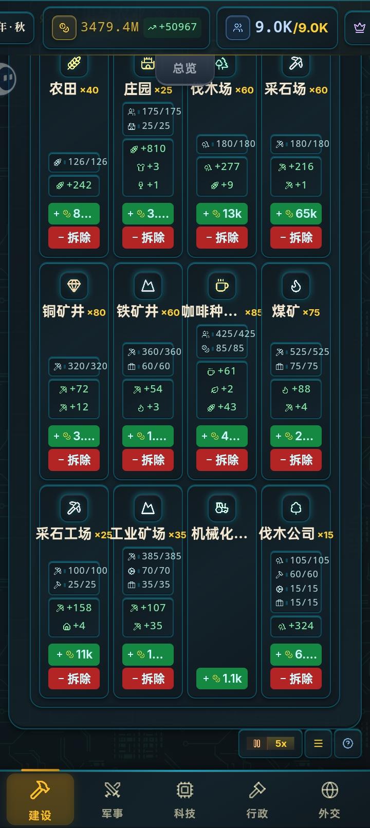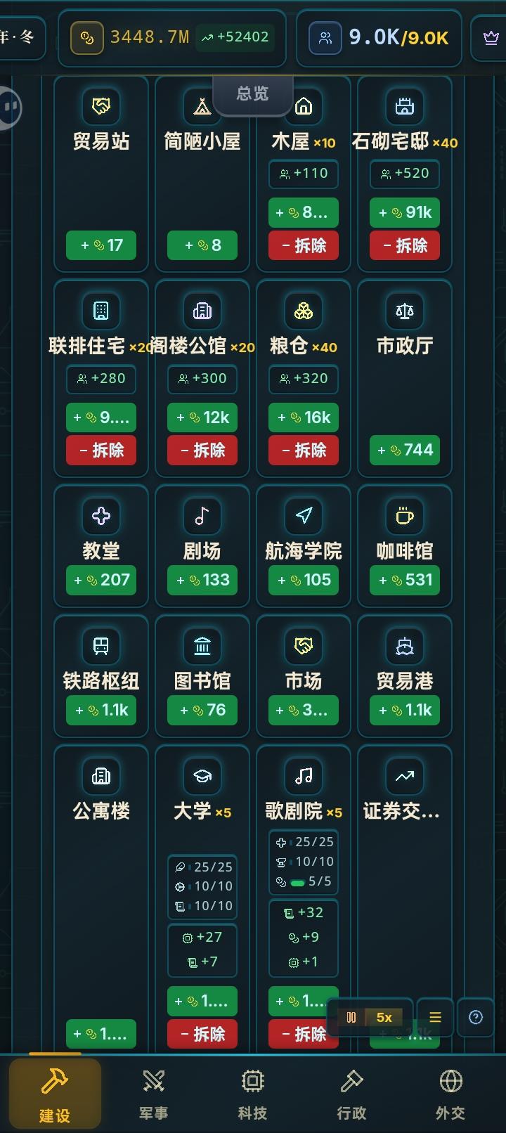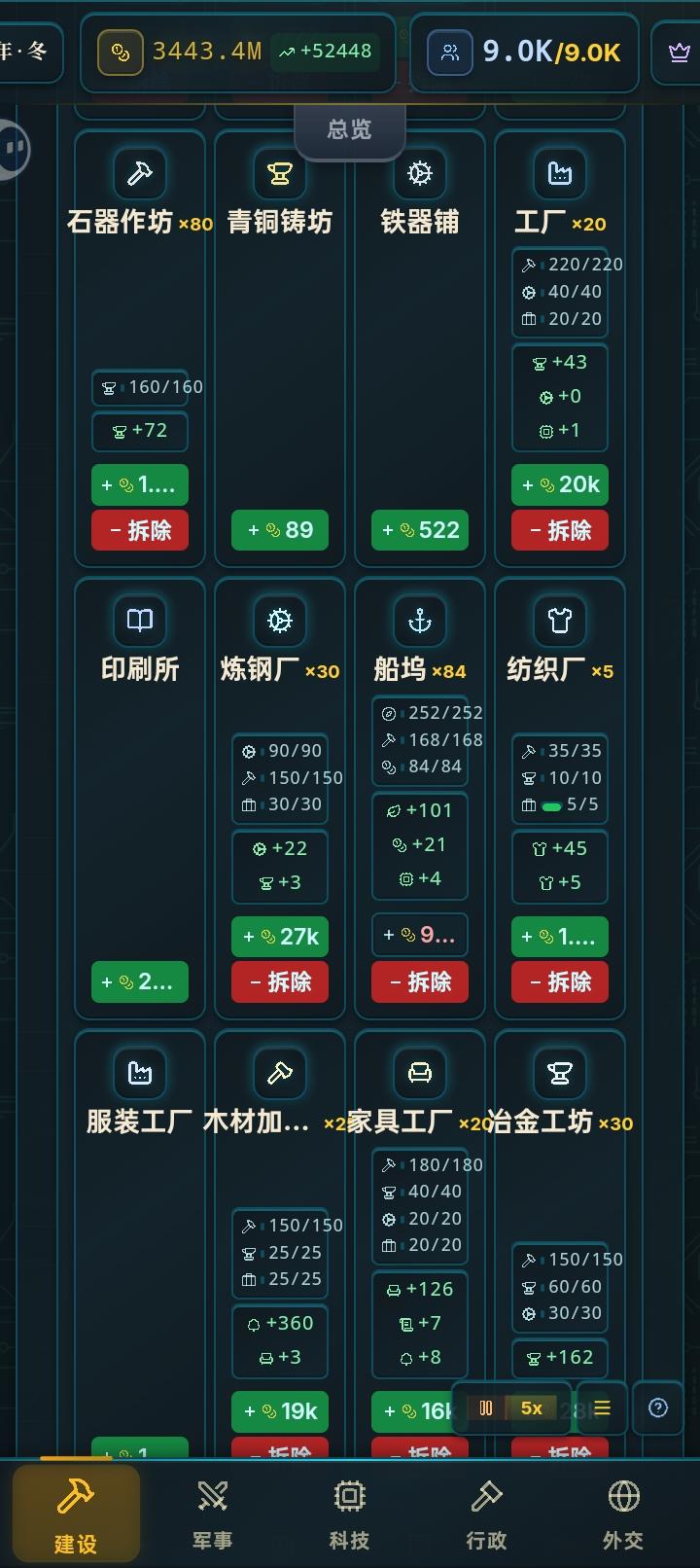 这个游戏的货币并没有存储上线,那么也就失去了囤积货币的意义,因为你根本花不完。除了供养军队与补贴阶层以外,其他的对货币的消耗,都是一次性的。因此,可以得出的结论是货币本身无用,只要国库收入是正的,就不需要关心如何增加货币收入。随着国内阶层的富裕程度增高,各阶层对物资的消耗也随之增加,国民越富有,物资就越匮乏,我们可以得出一个结论。在同等物资的情况下,1单位富裕的国民=10单位小康的国民,他们对物