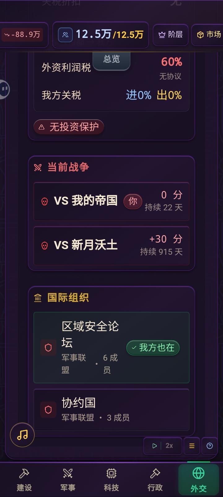 1.50版本《威斯特伐利亚》本次更新将游戏重点从单一的国家建设扩展到了复杂的地缘政治博弈。我们引入了基于时代的条约体系、完整的附庸宗主机制、海外资本输出以及深度的官员忠诚度模拟。🌏 核心重构:外交系统外交不再仅仅是宣战与结盟,现在它是你延伸经济触手、控制世界资源的工具。条约体系所有的外交条约现在都受到时代进程 (Epochs) 的限制,随着文明发展解锁更高级的互动。签订贸易协定签订投