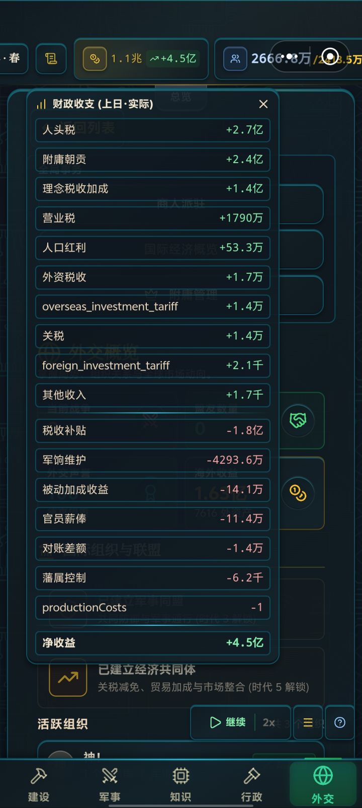 这都通胀了,而且bug还很多,许多机制极其不合理,我的更新后gdp是更新前的4倍,是库存严重下降,导致的物价急剧上升,民众虽然“富”了,但我攒的百年家底也没了大半😭