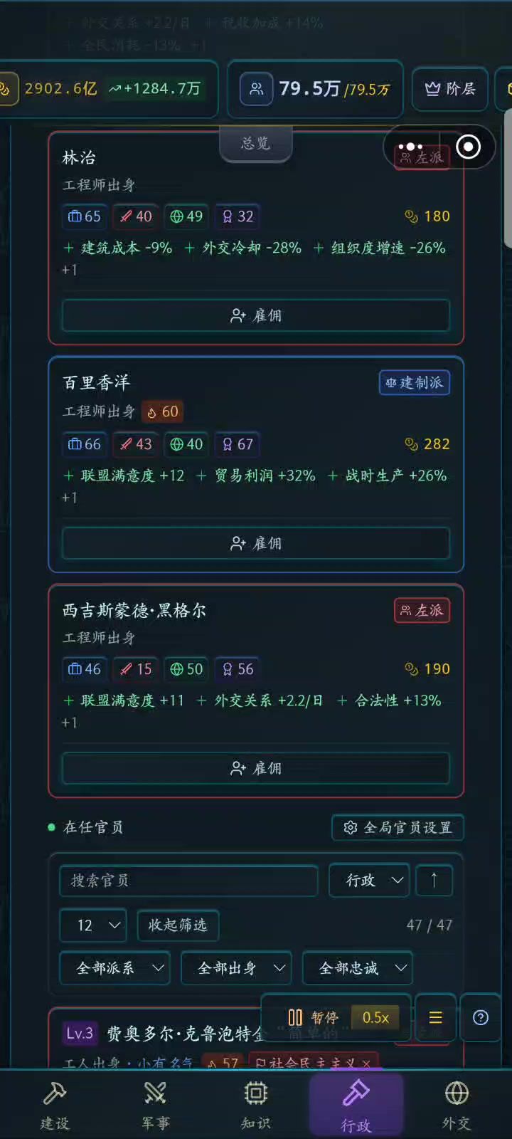 官员解雇不掉, 希望以后可以优化精化官员政治系统,提高下真实性。 现在的如果想从市场经济转变为计划经济太繁琐了,还有,现在似乎也与游戏名不大相符了[表情_佛了]