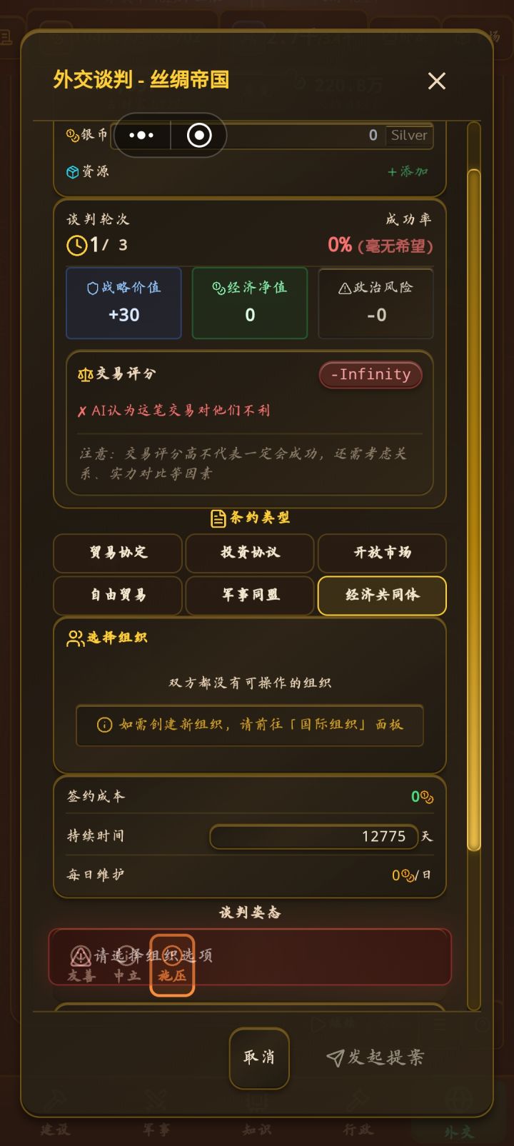 官员解雇不掉, 希望以后可以优化精化官员政治系统,提高下真实性。 现在的如果想从市场经济转变为计划经济太繁琐了,还有,现在似乎也与游戏名不大相符了[表情_佛了]