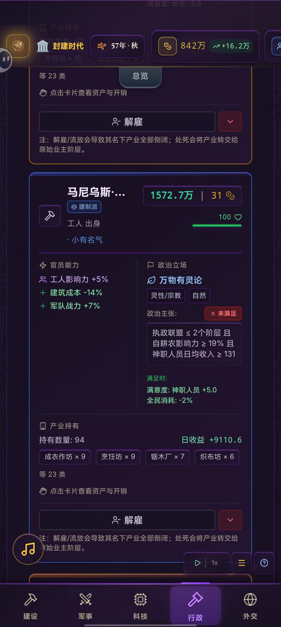 也就意味着只要官员建筑成本减少叠到100%就可以不吃数量成本惩罚。