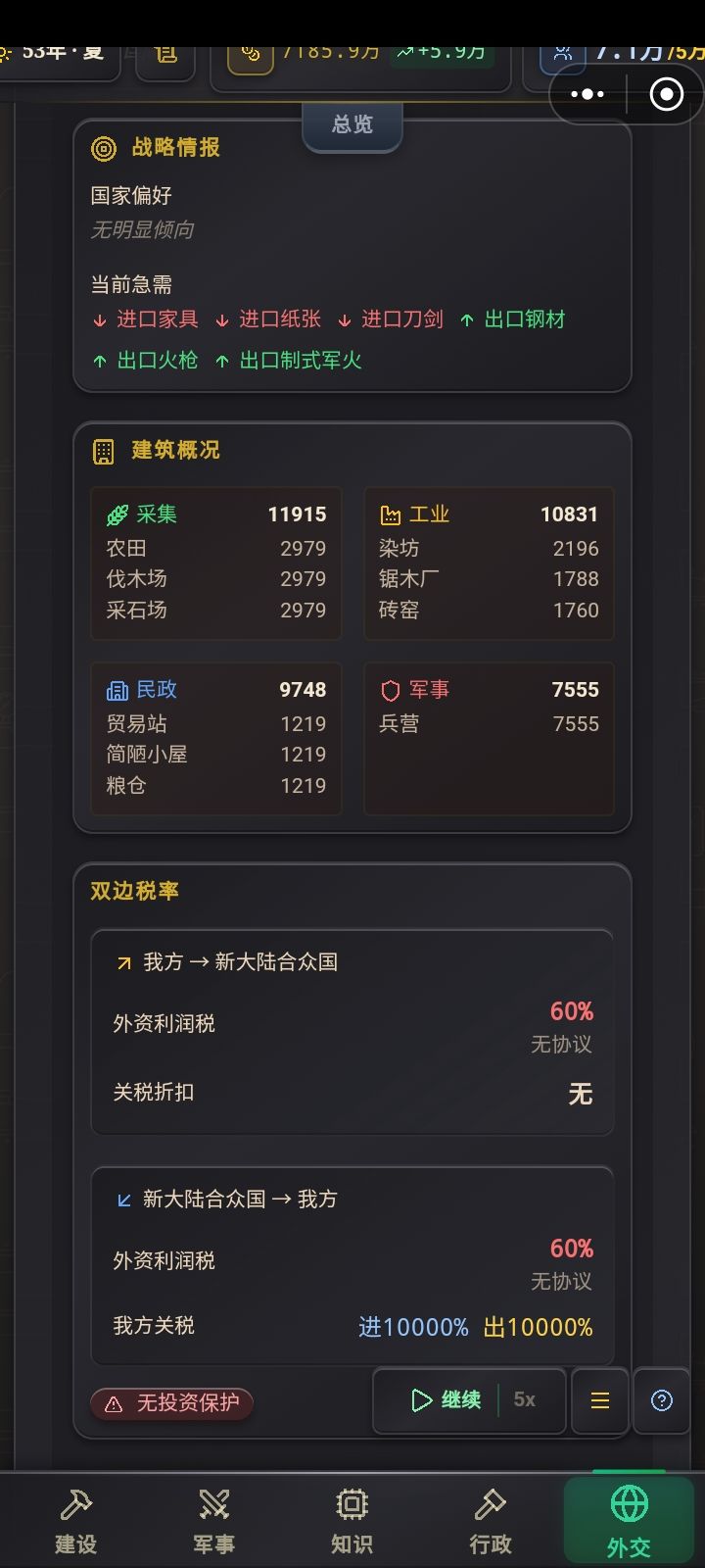 这都通胀了,而且bug还很多,许多机制极其不合理,我的更新后gdp是更新前的4倍,是库存严重下降,导致的物价急剧上升,民众虽然“富”了,但我攒的百年家底也没了大半😭