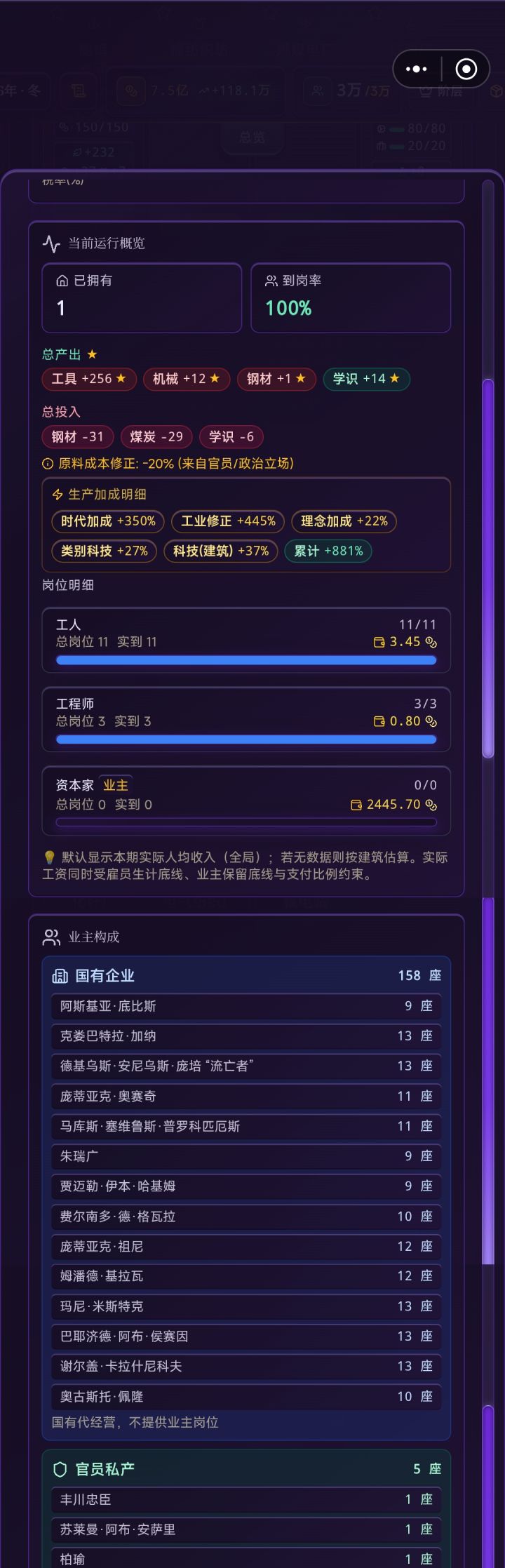这都通胀了,而且bug还很多,许多机制极其不合理,我的更新后gdp是更新前的4倍,是库存严重下降,导致的物价急剧上升,民众虽然“富”了,但我攒的百年家底也没了大半😭