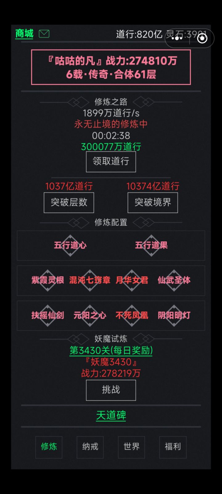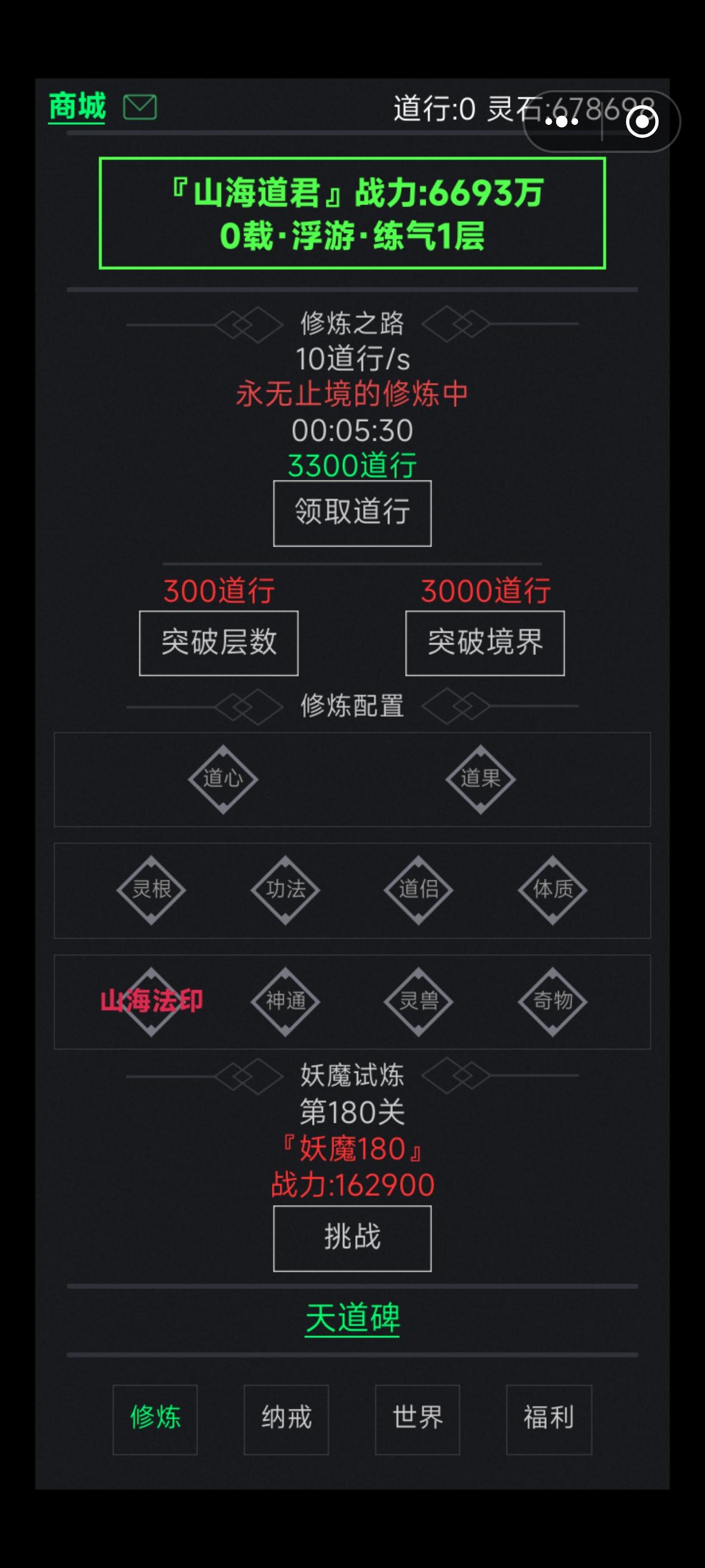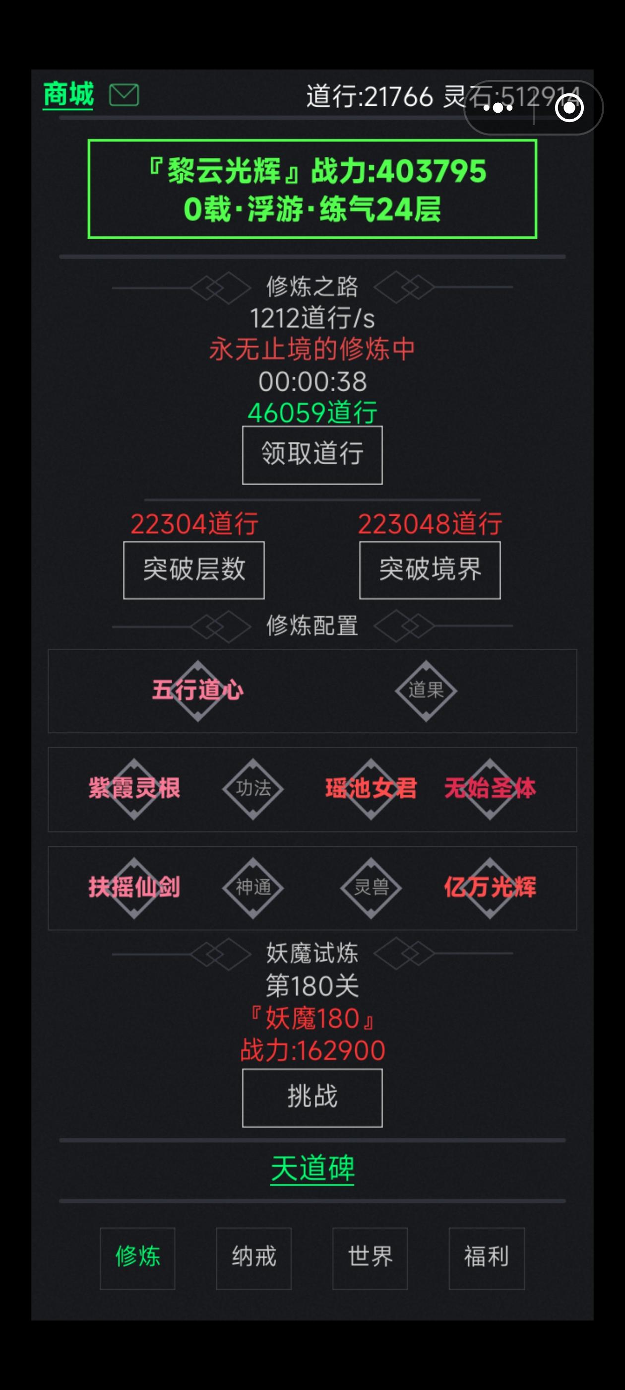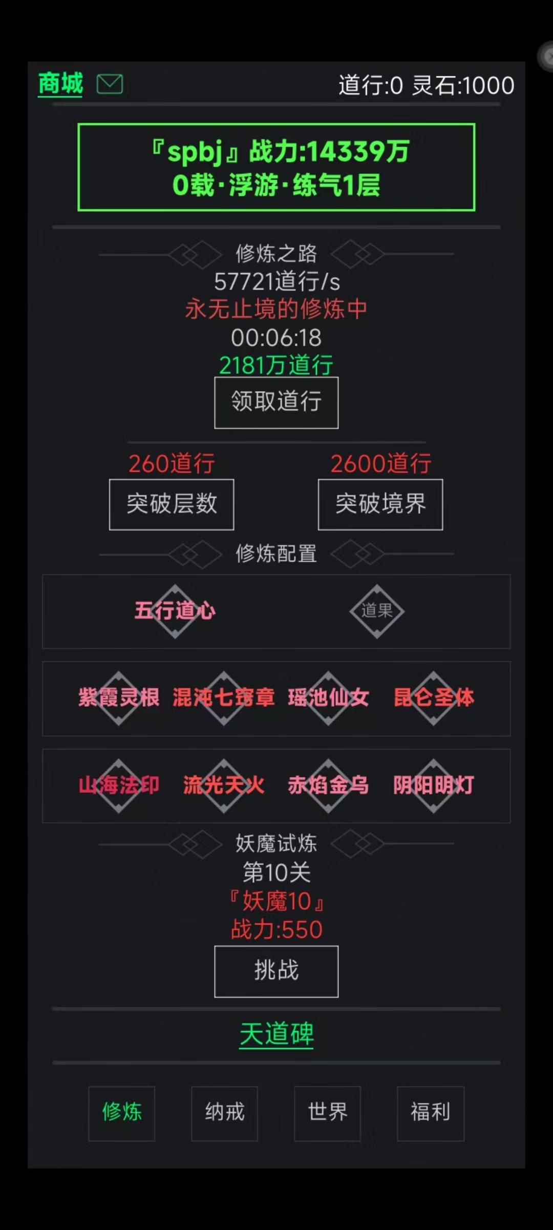 其实我认为作为玩法核心的第一次突破到筑基期,没有任何提示,我下载下来的时候本着看看好不好玩再决定玩不玩,练气应该是13层就突破了,发现挺好玩的遂看了看攻略,然后就把自己看死了,不用去问群主了,群友说应该有几十个人去问了,不会给你清除数据的,想重来只能换号,我这个号也不计划换,所以只能退出这个游戏了