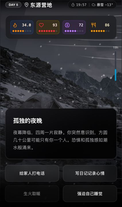 创作者的话《赛博徒步:生死鳌太线》不仅是极端生存模拟,还隐藏多条可探索的时间线。其中一条将鳌太线真实救援事件完整还原,玩家会一步步体验主角逆风救人的抉择、伤痛与坚持。我们希望 TapTap 的玩家能通过这条时间线理解:每一次穿越背后都有鲜活生命与沉重代价。