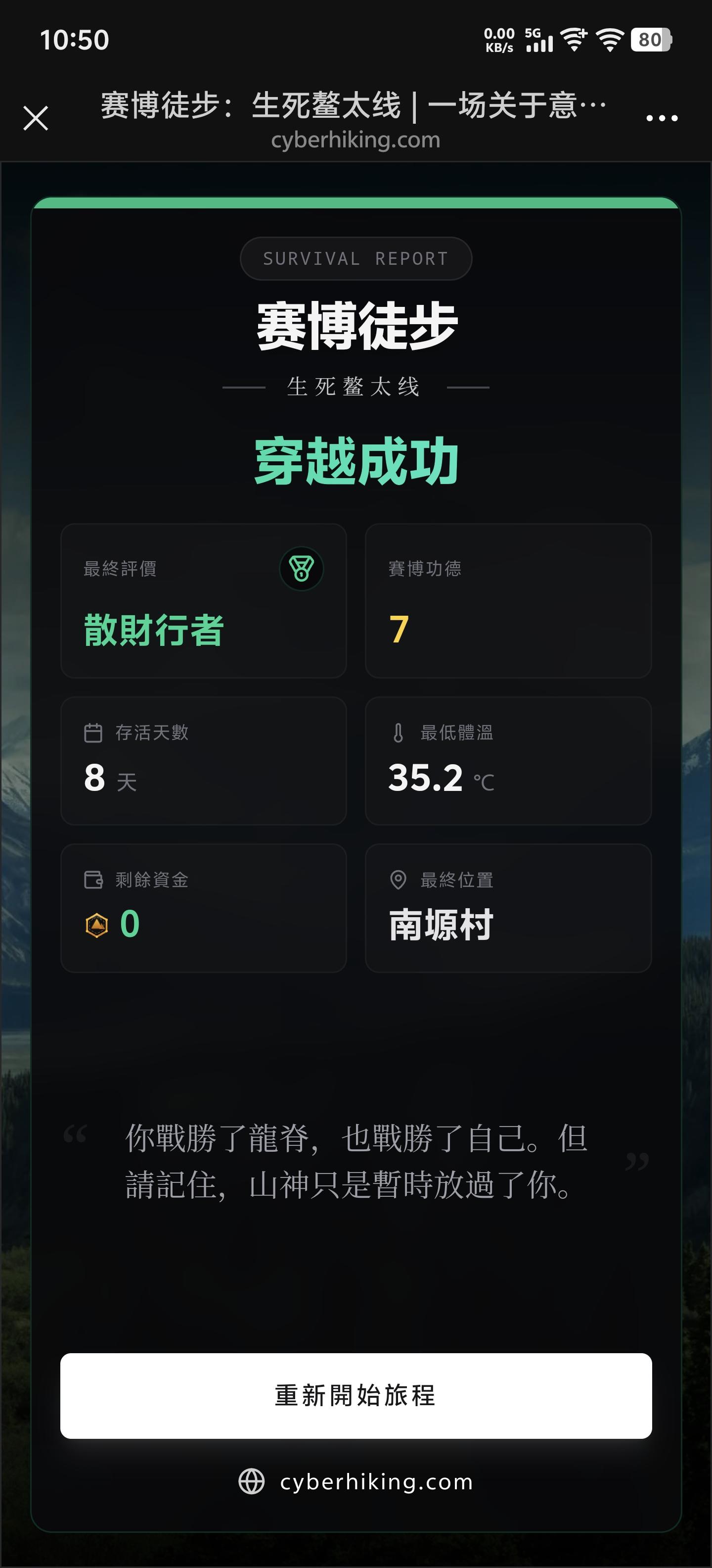 挺有趣的,第一次就穿越成功,不过评价是缺德大师哈哈哈哈