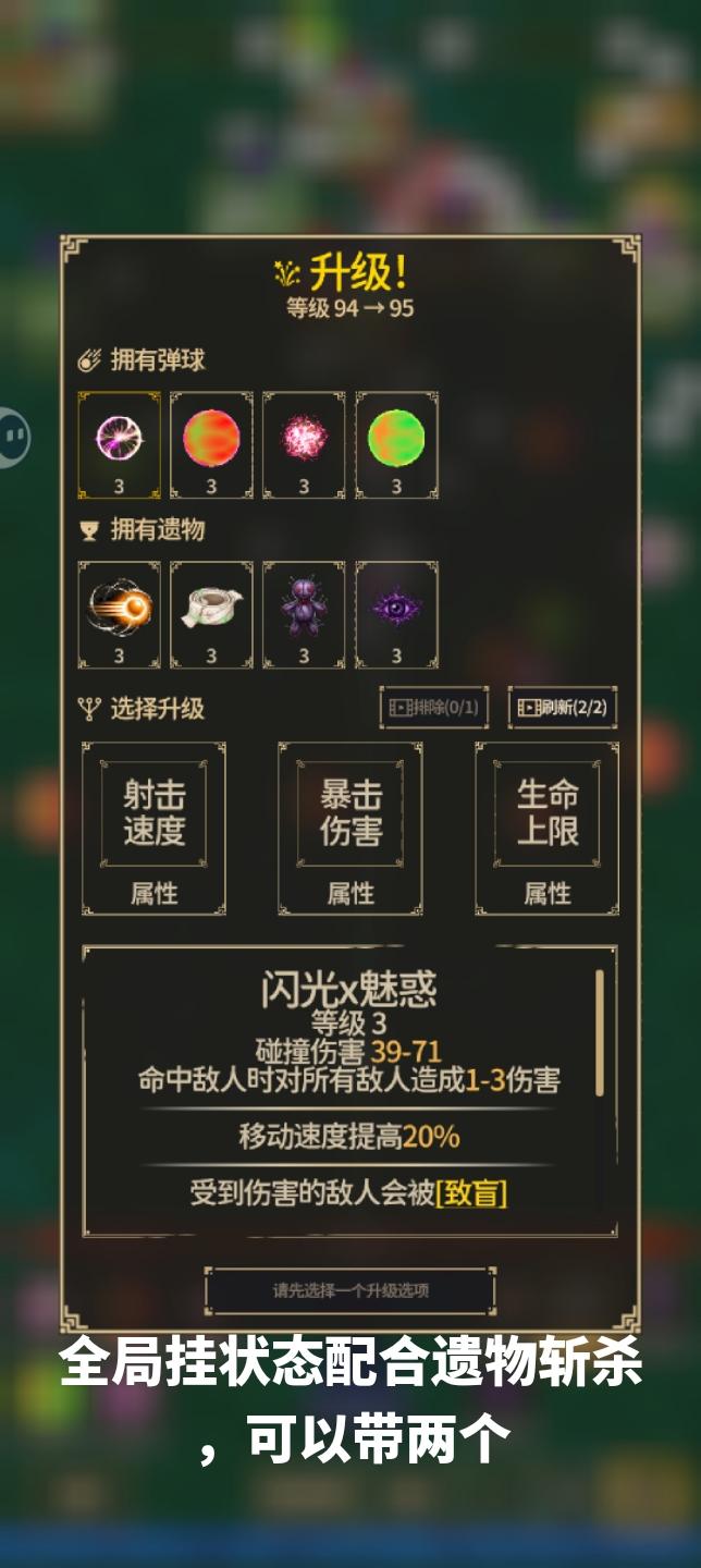 非常有意思的游戏,搭配很多,也有不同的玩法。因为吃到了“闪烁”弹球的甜头,已经完全不想玩别的弹球,我来分享一下围绕“闪烁”弹球的bd组成。目前是排行榜第一(打无尽的人还是少),不过基础关卡也可以按类似的构建路线。“闪烁”弹球由“光明”+“黑暗”进化而来,重点是每秒造成1次全屏aoe伤害,伤害很低,但作为别的弹球的启动极其恐怖。普通关卡中进化“闪烁”后,优先再获取“荆棘”弹球,由“细胞”+“地