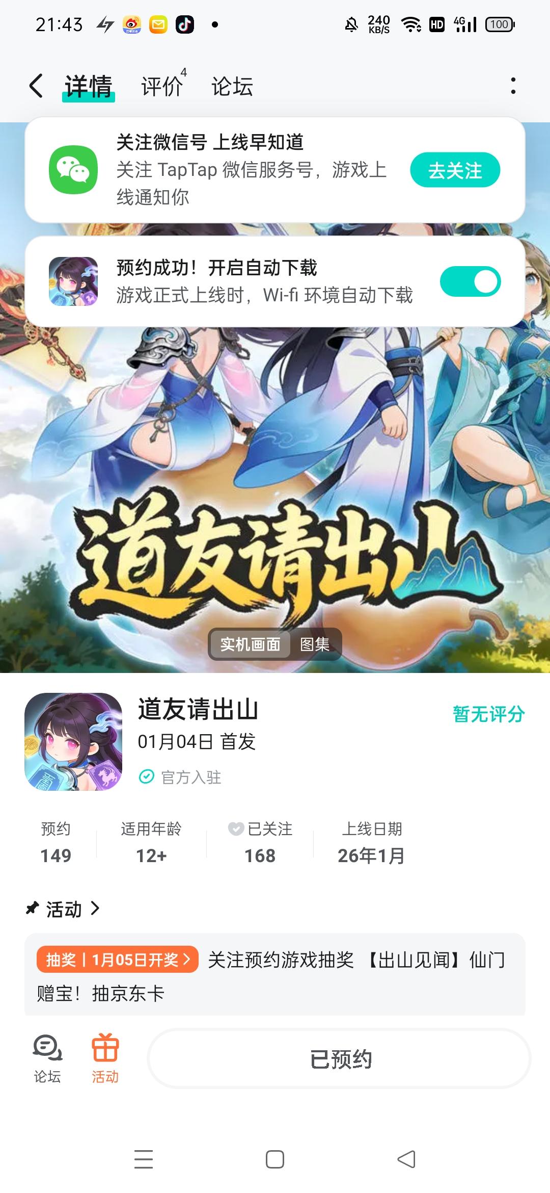 参与办法:在论坛上分享关注预约游戏截图或者视频,或者在本帖子下回复截图,评价,均可可参与抽奖。奖品:20元京东卡*1,名额5个!时间:2025年12月30日~2026年1月4日注意:1.本次自动开机中奖。2.玩家回帖时必须带有相应链接或者截图,否则视为中奖无效。3.严禁发布涉政、黄赌毒、恐怖暴力等违规内容,违规者奖将取消获奖资格。