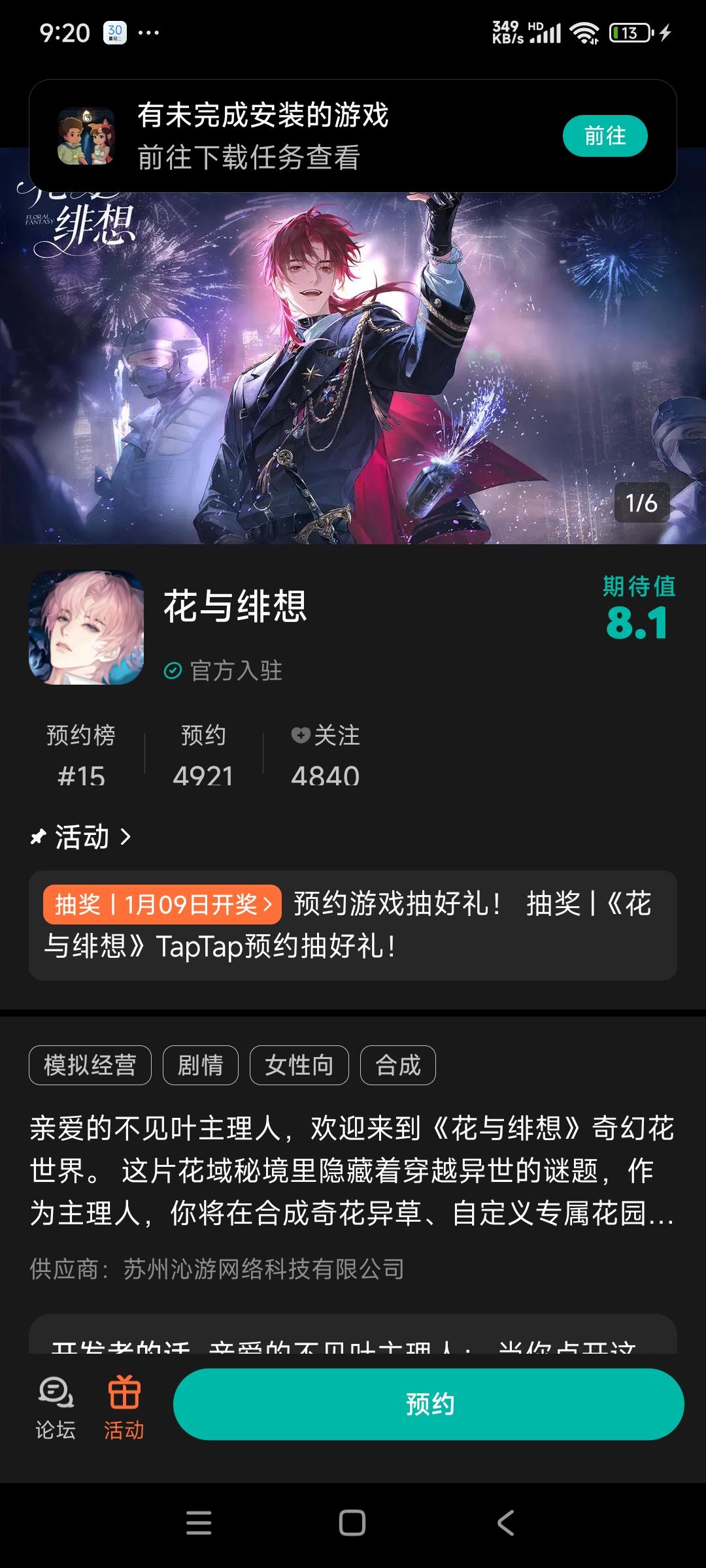 亲爱的不见叶主理人:终于等到你踏入《花与绯想》奇幻花世界啦!这是一场穿越异世的浪漫邀约,治愈你的每一段休闲时光! 穿越异世花境,合成浪漫、搭建花园、邂逅美好,玩转多元活动,你的专属花园,正等待第一朵花的绽放,快来共赴这场繁花之约吧! ☆ 预约有奖互动 ☆➤参与方式:关注并预约《花与绯想》,同时在评论区晒出你的预约截图,即可参与抽奖!➤奖励内容:500元京东卡×1,100京东卡×2,小