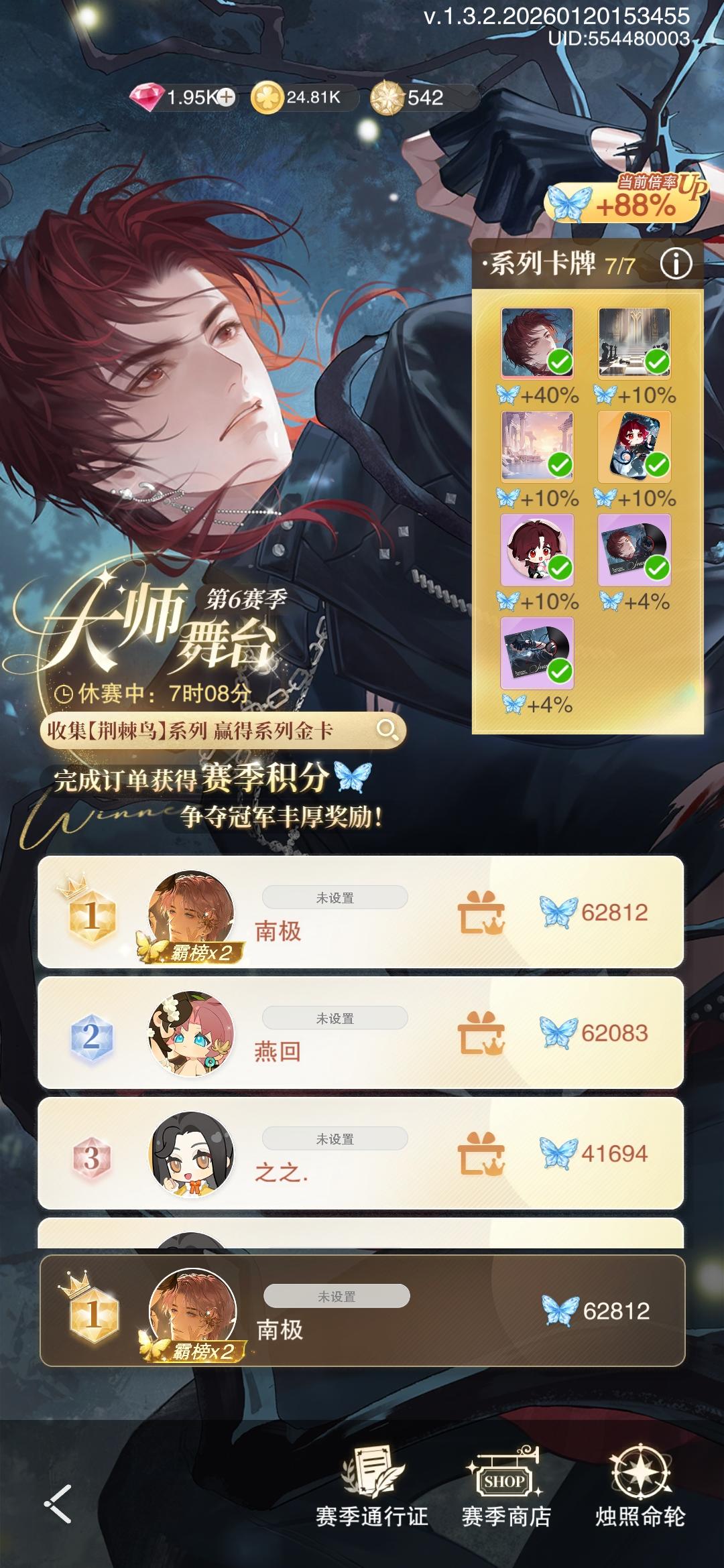 是dy小程序玩家,因为不共通所以没有玩app版的对于这个游戏,我觉得如果不追求排名的 可以把他当做一个休闲游戏来玩在有限的时间内是可以集齐所有赛季卡的,当然如果有没拿到的卡也可以通过赛季币去换男主转盘次数每次都会清空重来,并且各男主道具不一样,当屯屯鼠一般是两个赛季加上用钻换的话是完全可以凑一个保底的不清楚app的流程是否和小程序一样,但后面会有一个姜时诏的UR转盘,这个就得靠氪金