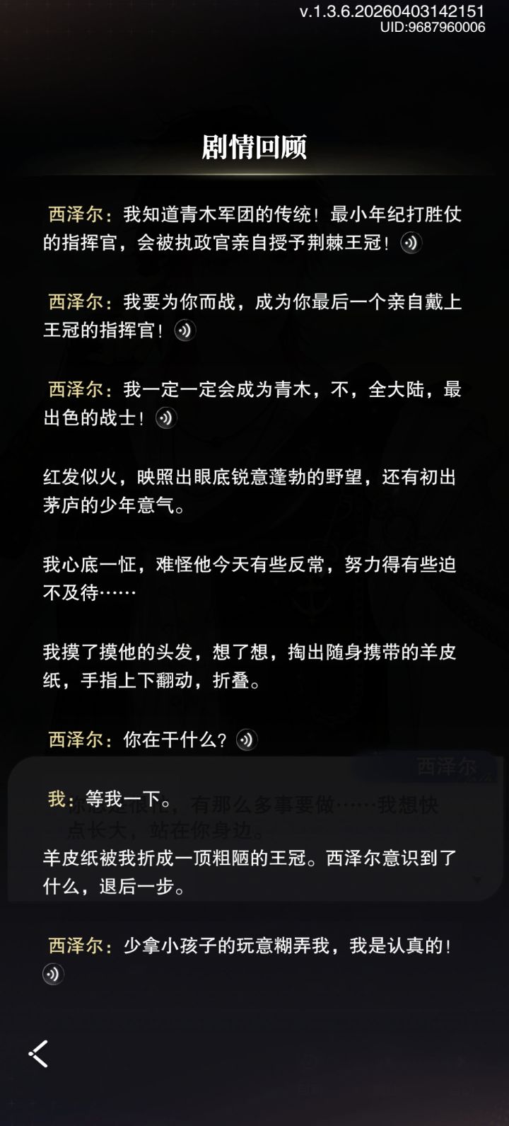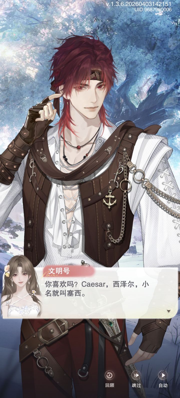 红发是燃尽战场的烈火,映照出他眼底锐意蓬勃的野望。那一刻,西泽尔像一柄出鞘的利剑,锋芒毕露,扬言要为你打下整片大陆——他渴望荆棘王冠,渴望成为你最后亲自授勋的指挥官。这是赤焰的侧脸,是少年意气在战火中淬炼成的忠诚。然而,当你折下一顶纸做的王冠,轻轻戴在他发间,那团烈火忽然安静了。他嘴上说着“少拿小孩子的玩意糊弄我”,身体却退后半步,又忍不住伸手去摸那粗糙的纸边。雾气悄然漫上他平日里只装得下野心与