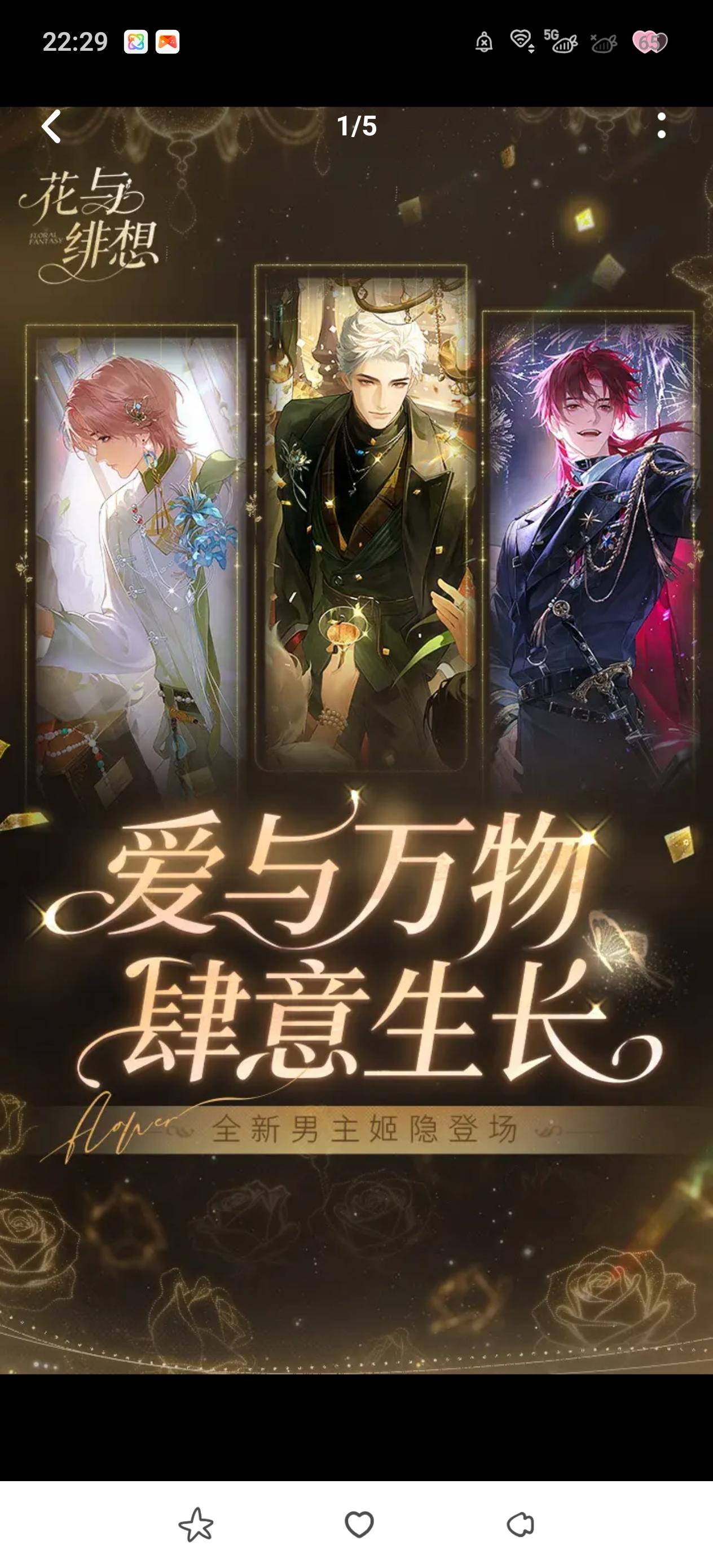 画风都挺好看的感觉官方是在主推粉毛吧,不过我不喜欢谜语人,尤其是苦大仇深的谜语人,所以pass(但是脸真好看我算是白毛控,但不知道是不是宣传页角度的问题。中间这个男主有点显老,而且我刚玩,还没解锁到他,嗯,,不知道咋评价,可能遇到了后会好转?一开始最喜欢红毛,结果声音一出来直接萎了,不是说声音不好听,就宣传页上给我的感觉是那种恣意不羁的赶脚,结果声音配的是个阳光男大,太违和了啊啊啊哭泣所以