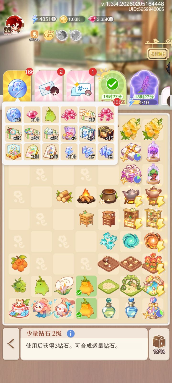 我基本上是x8在玩,然后新出的订单总有x4的产品,是因为我第一个图没完事吗,等级是靠送礼物升的,送礼物基本上2金币一经验很划算啊,顺便纪念一下第三赛季完赛,准备好体力第四赛季狠狠摆烂了