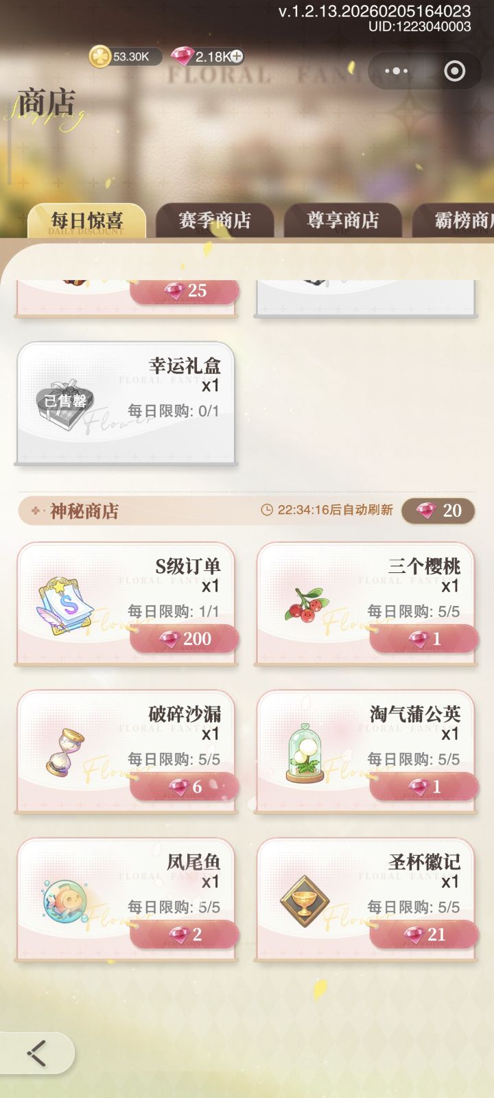 10体力1朵小花,2k+小花需要体力2w+。要不是卡双倍体力交S级订单哪里去搞这么多体力。
