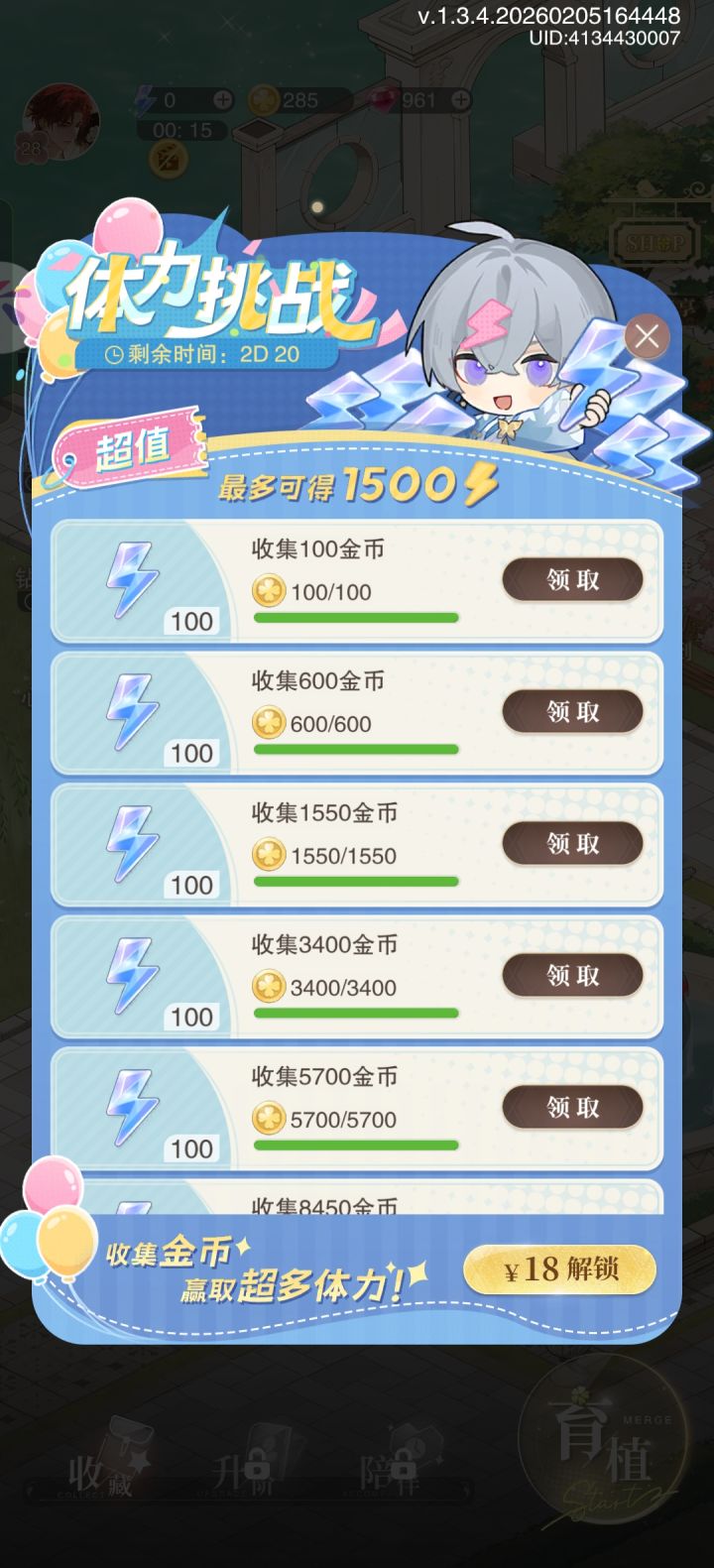 这个花如果不领的话结束后会自动结算体力发到邮箱吗