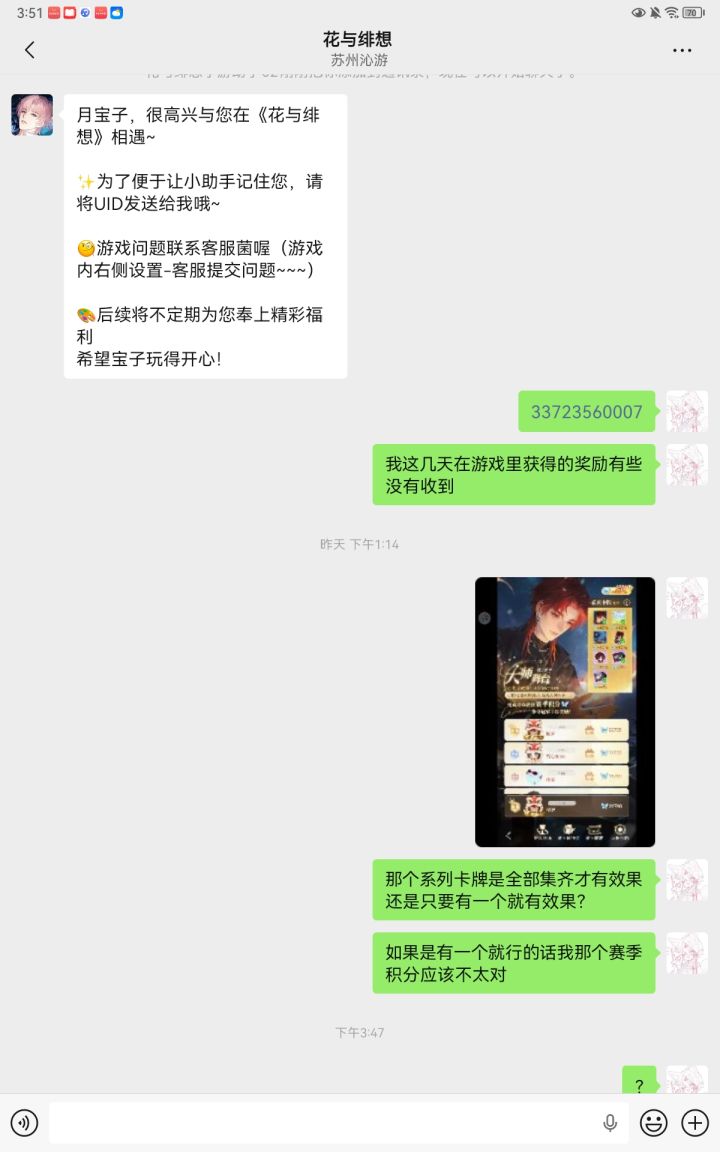 我这个赛季积分应该是有问题,那个卡牌获得之后会有百分之多少的积分,但是我大概率没有得到,已经三两天了问客服也不管也不回我,能不能解决给个信行不?#花与绯想 #花与绯想攻略 #花与绯想官方 #花与绯想客服