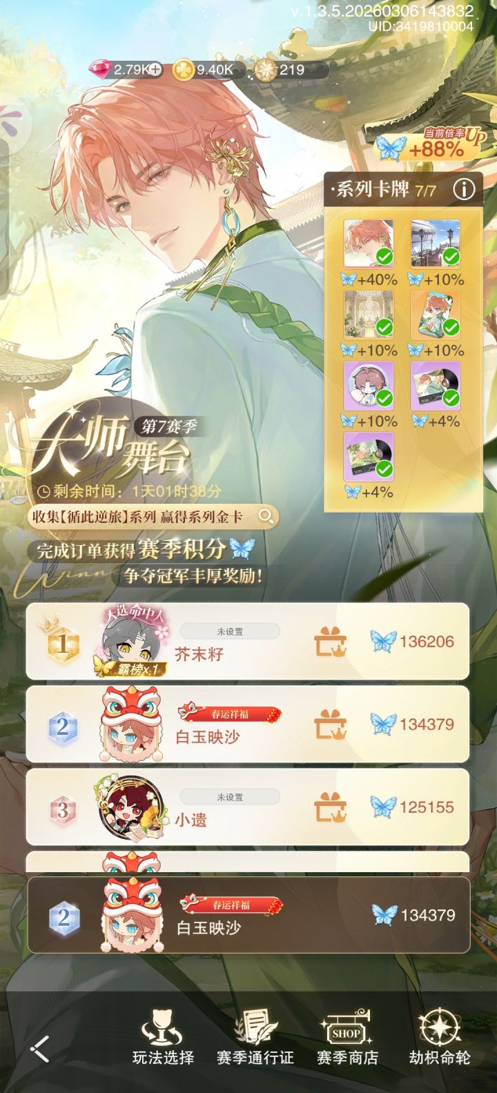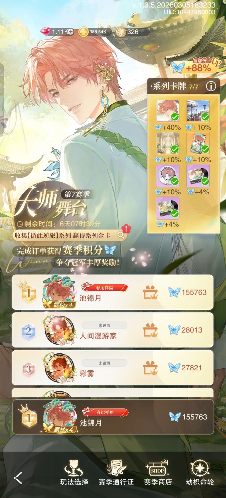 来了,可能是前面两个赛季摆烂,这一赛季都是不认识的宝宝们。好消息,我的金币很多,坏消息,我好像卡在亲密值的那个音符了。如果命苦是一种天赋,那我天赋异禀,还有感谢昨天宝宝给我说的兑换码。