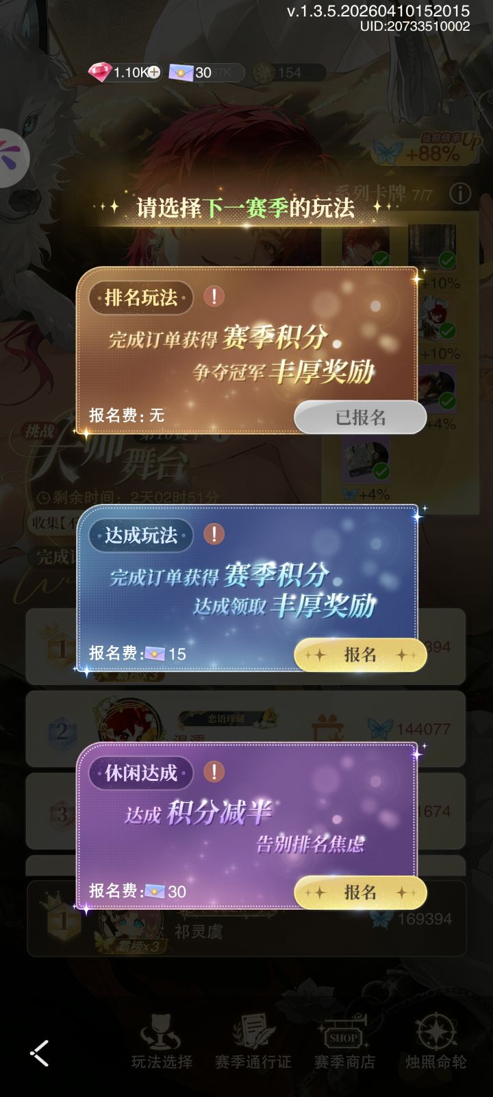 感觉自己有点胜负心,但又不是很强。还有两个s级订单没提交和四万体力没用。可每天被破班摧残,天天加班,一回家打开手机,十点了,应该调个闹钟的。好几次都是没来得及冲榜。感觉有点可惜,毕竟自己花了那么多体力进去还没拿第一。如果后面的赛季遇到氪佬,那我是一点希望都没了。自己也只是微氪玩家,不想再充钱了。