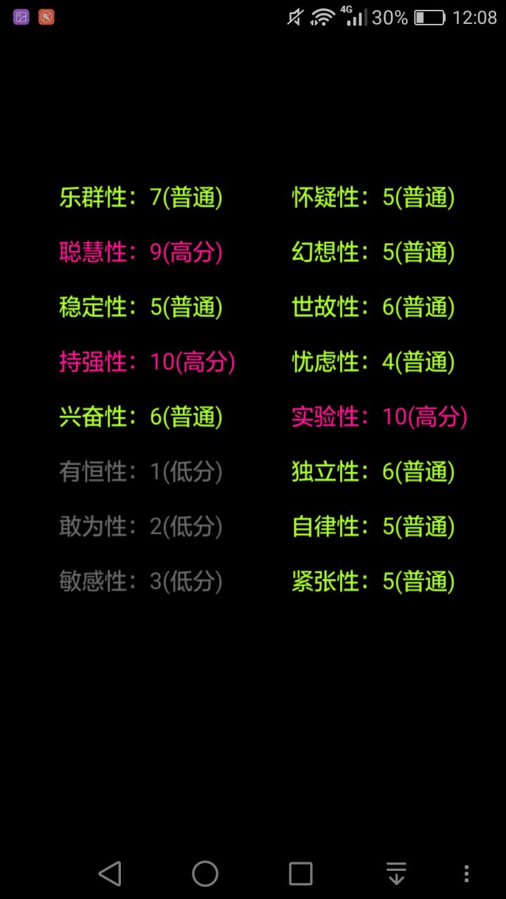 通过“游戏”让人接触心理学,美中不足就是游戏没有过多画面~ 当然这种测试结果只能作为参考,心理学需要多方面接触才有准确结果。
