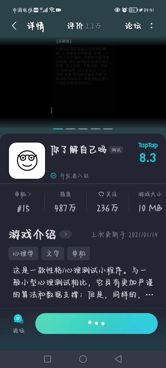 之前好像已经下载过玩过这个测试,这次录个屏存个档,然后卸载游戏,等下次万一过段时间又想到来玩了,对比下测试结果有没有区别。