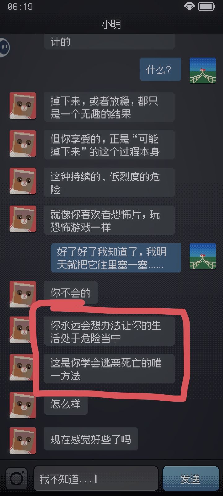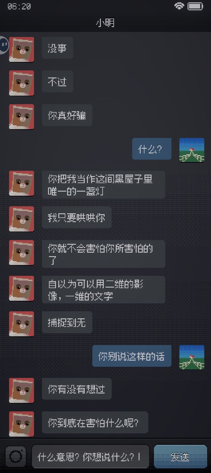 而且聊天期间“小明”也一直在有意无意地提起门外的的人敲门之类的,感觉此网络流体真是相当的坏心眼啊