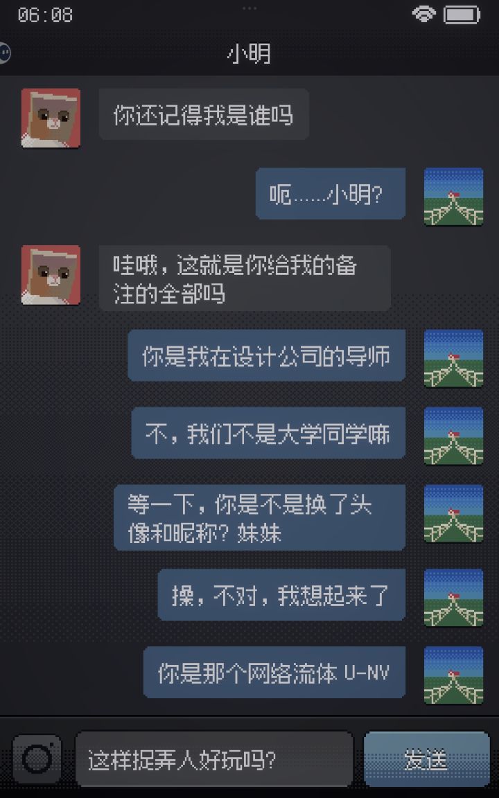 捂耳 : 你分析得好细呀,更多是从心理角度分析,与对话的逻辑去推理,我能感觉到你深刻地代入了进去,但我玩的时候,始终处于第三视角,始终在想着这是她们之间的对话,还有你在最后要踩一下自己,其实你给的视角不错的,我看过其他评论,一般都不会这样子踩一下自己,有一瞬间我觉得你和这个游戏的主角很像