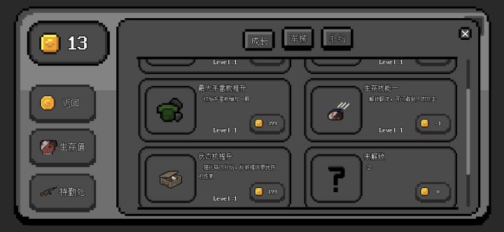 死守即将在接下来的版本里加入新道具和新的敌人啦 (ૢ˃ꌂ˂⁎),大家有什么好的看法可以在本贴下面说说哦,我可能会将呼声最高的元素添加到游戏了哦(如果合理的话 (◔◡◔) ),不过可能更新会稍慢哦,毕竟加的东西多了bug也就多了(ó﹏ò。) 。最后提前祝大家新年快乐,玩的开心鸭! (❁´◡`❁)*✲゚*