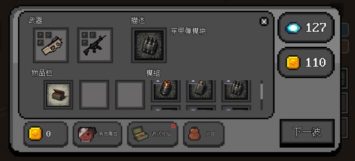 难度比之前高了,更有挑战性了。打金上限更高啦,这把第九波遇到一次不刷怪不然还会更多更爽。后期刷近战武器配件?真的假的……极难后期轮近战?那很有手法了。