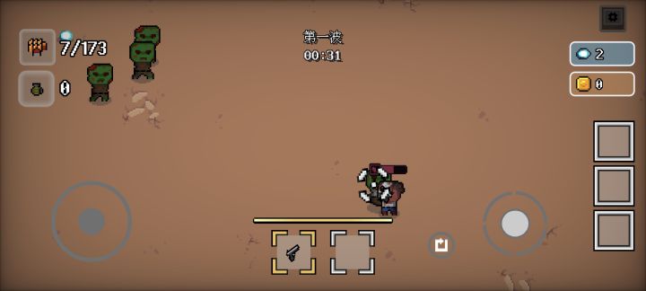 攻击摇杆可以改成手动攻击,攻击按键不要固定可以自行设置,放大或者缩小,机枪开火有时候闪退,近战武器前摇太大,换弹掉移速有点坑,刷怪不规则,因为视野不开阔突然刷在脸上,瞬间残血,近战武器可以多加几个,如棍子的横扫附带几率眩晕,长枪的直刺附带几率暴击,加把大刀横转一圈,可以做成一个小技能(类似闪避,闪避也有前后摇,怪的移速太快,翻滚过去就挨打),可以加个RPG什么的枪械,投掷物加点闪光弹燃烧瓶,过个几
