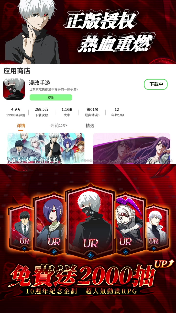正版授权,全新卡牌对战手游——《归墟战纪》今日上线!现在下载领大量升级资源!>>>超人气动画正版授权>>>经典角色悉数回归>>>重温精彩的动画情节【开服福利】一、签到福利:核心角色免费送!新手登录可以领取签到福利,第7日签到可以领取核心角色月山习【美食家】!二、狂撒千抽:注册就送2000抽!开服庆典期间,每日倒计时结束后可以领取招募券奖励,累计2000抽招募券免费送!三、福利月卡