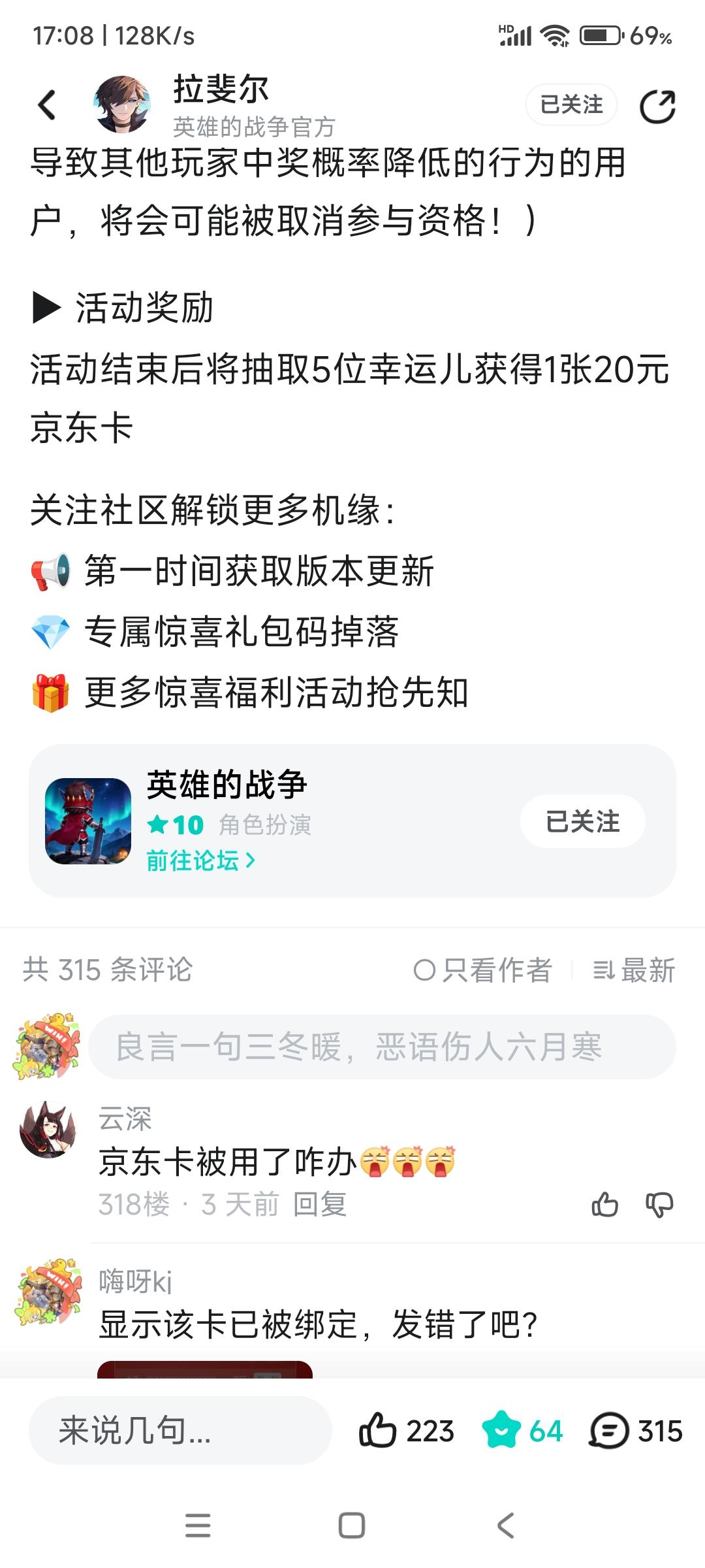 当暗影魔物悄然逼近,童话王国的边界正发出微弱的呼救——我们耗时许久打磨的萌系策略塔防《英雄的战争》,终于要与大家见面啦!🎁 专属福利:【京东卡抽奖活动】【京东卡抽奖活动】▶ 参与方式1.点击关注发帖账号并预约《英雄的战争》且发新帖晒截图2.在本帖下方评论区分享发帖链接即可【奖品发放】到达开奖时间后,由taptap系统随机抽取符合要求的幸运玩家,自动发放兑换码(对于同一账号大量故意发布