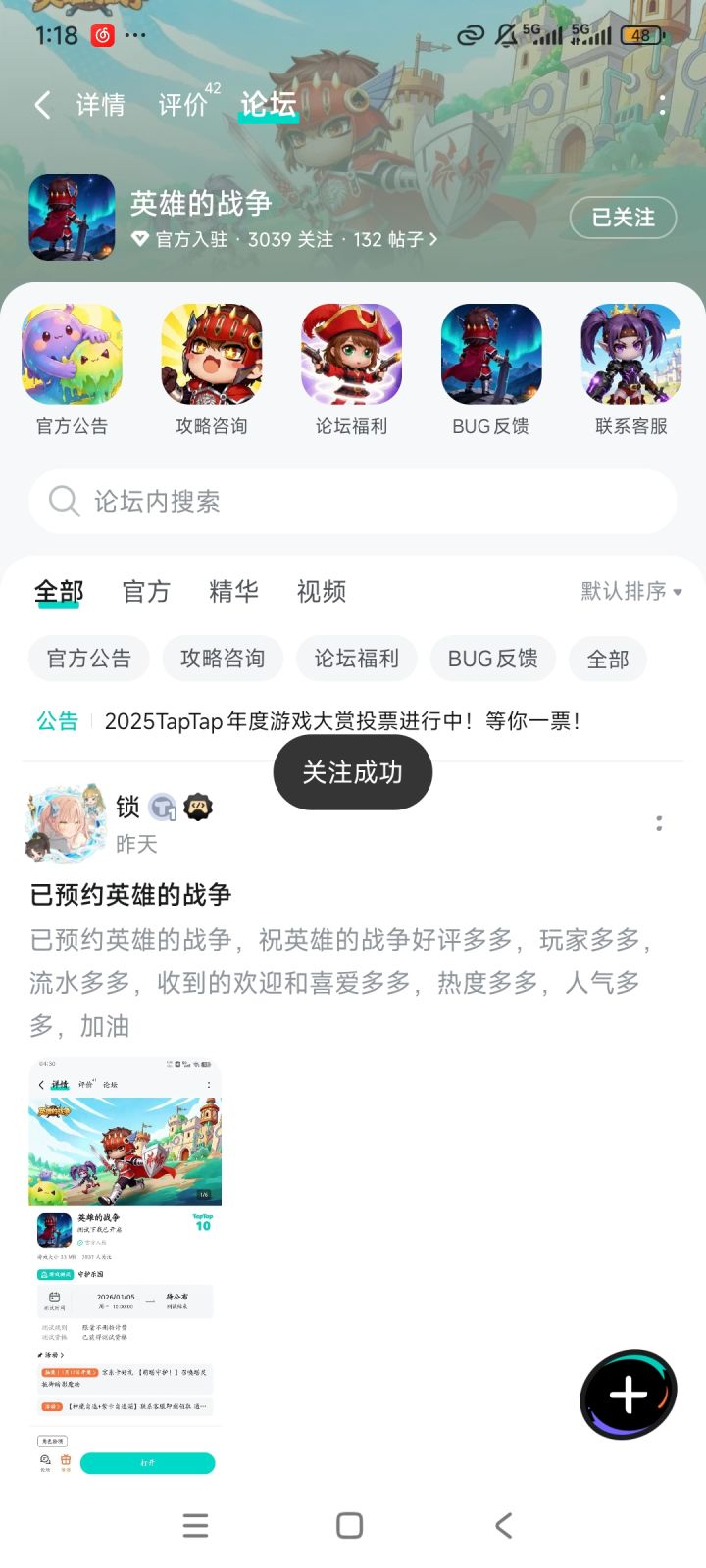 当暗影魔物悄然逼近,童话王国的边界正发出微弱的呼救——我们耗时许久打磨的萌系策略塔防《英雄的战争》,终于要与大家见面啦!🎁 专属福利:【京东卡抽奖活动】【京东卡抽奖活动】▶ 参与方式1.点击关注发帖账号并预约《英雄的战争》且发新帖晒截图2.在本帖下方评论区分享发帖链接即可【奖品发放】到达开奖时间后,由taptap系统随机抽取符合要求的幸运玩家,自动发放兑换码(对于同一账号大量故意发布
