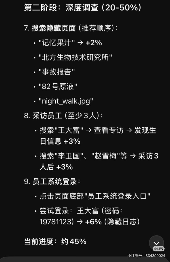 ******阶段一:初步信息收集******1、特殊内容1.1首页①公告:因极端天气,景区今日临时关闭,恢复时间另行通知。②口号:"记忆中的温暖,至北为您保存"③下部分内容和“光荣榜”一样王大富介绍:“深度记忆特调”果汁能让游客通过果汁回忆起美好时光1.2景区介绍①被遮挡的内容:“北方***研究所”,最下面又提到“【北方生物技术研究所】”,不知是否前身②部分游客反映泡温泉后会做