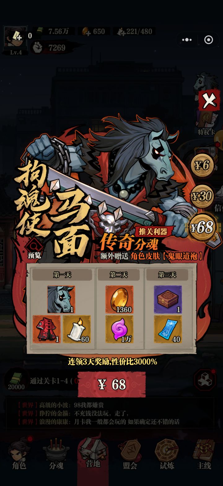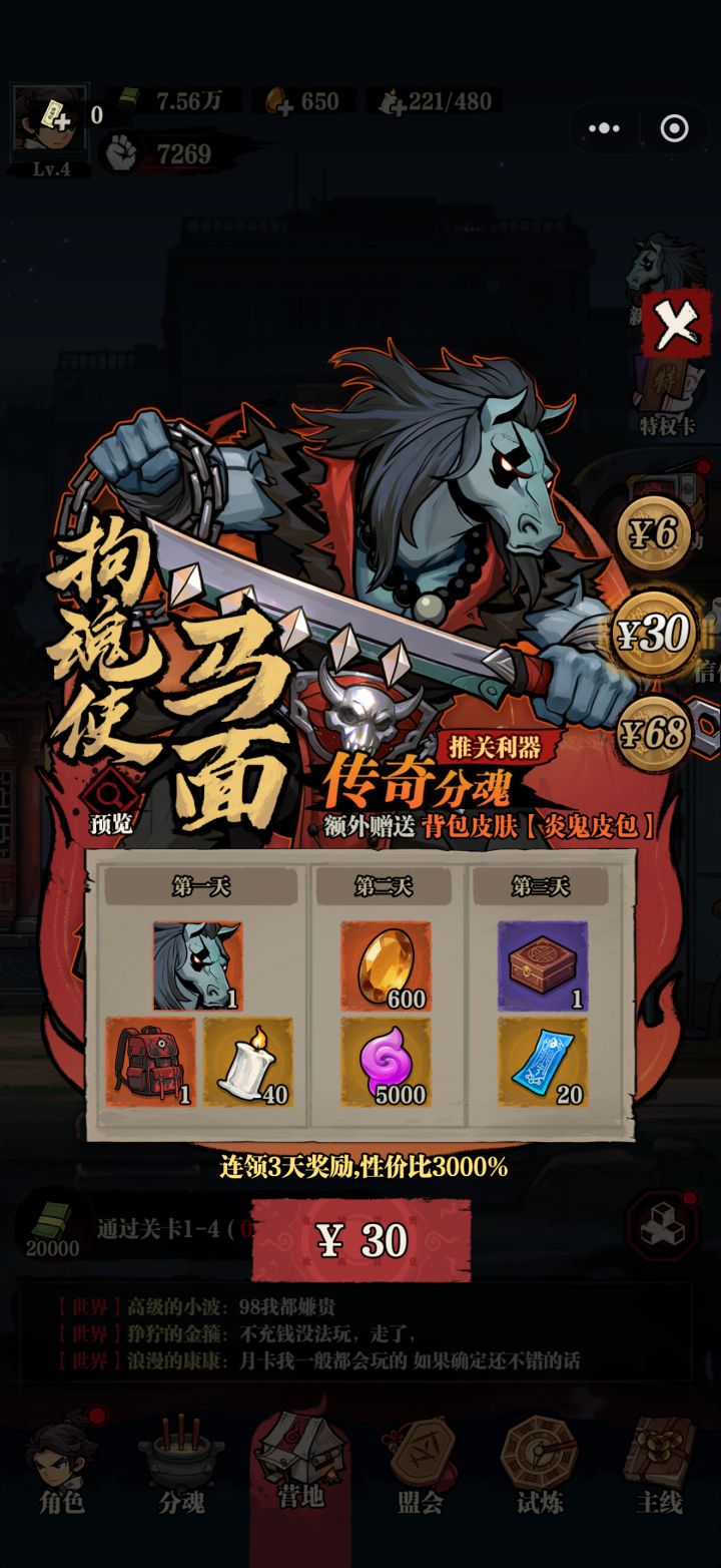 3、目前没有感觉游戏很氪金,我本人就充了个首充月卡,感觉完全玩的下去。
