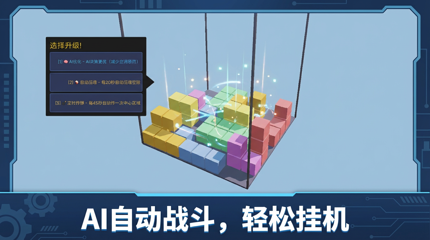 一款结合了挂机肉鸽玩法的3D俄罗斯方块游戏。AI自动战斗,玩家选择升级技能,收集各种被动增益、自动触发技能,打造属于你的挂机流派!