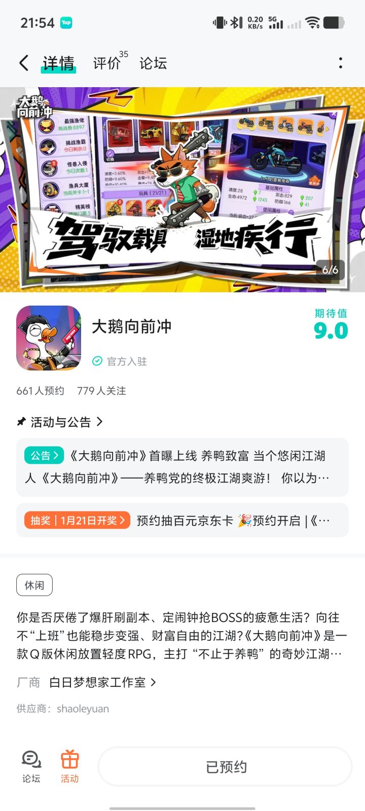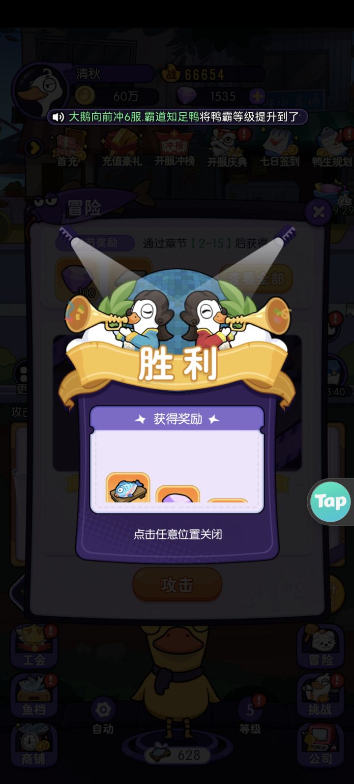 亲爱的各位大侠:《大鹅向前冲》已于 1月14日10:00 正式开服!经过这几天的江湖闯荡,你是否已经感受到了到喂鱼爆神装的惊喜?体验过离线挂机躺收资源的惬意?现在,来TapTap社区说出你对游戏的第一印象,就有机会赢取超值资源奖励!📝【活动主题】💬在评论区留言,分享你对《大鹅向前冲》的第一看法 / 初体验感受!比如:“喂鱼爆装太爽了,随手开出不朽神装!”“