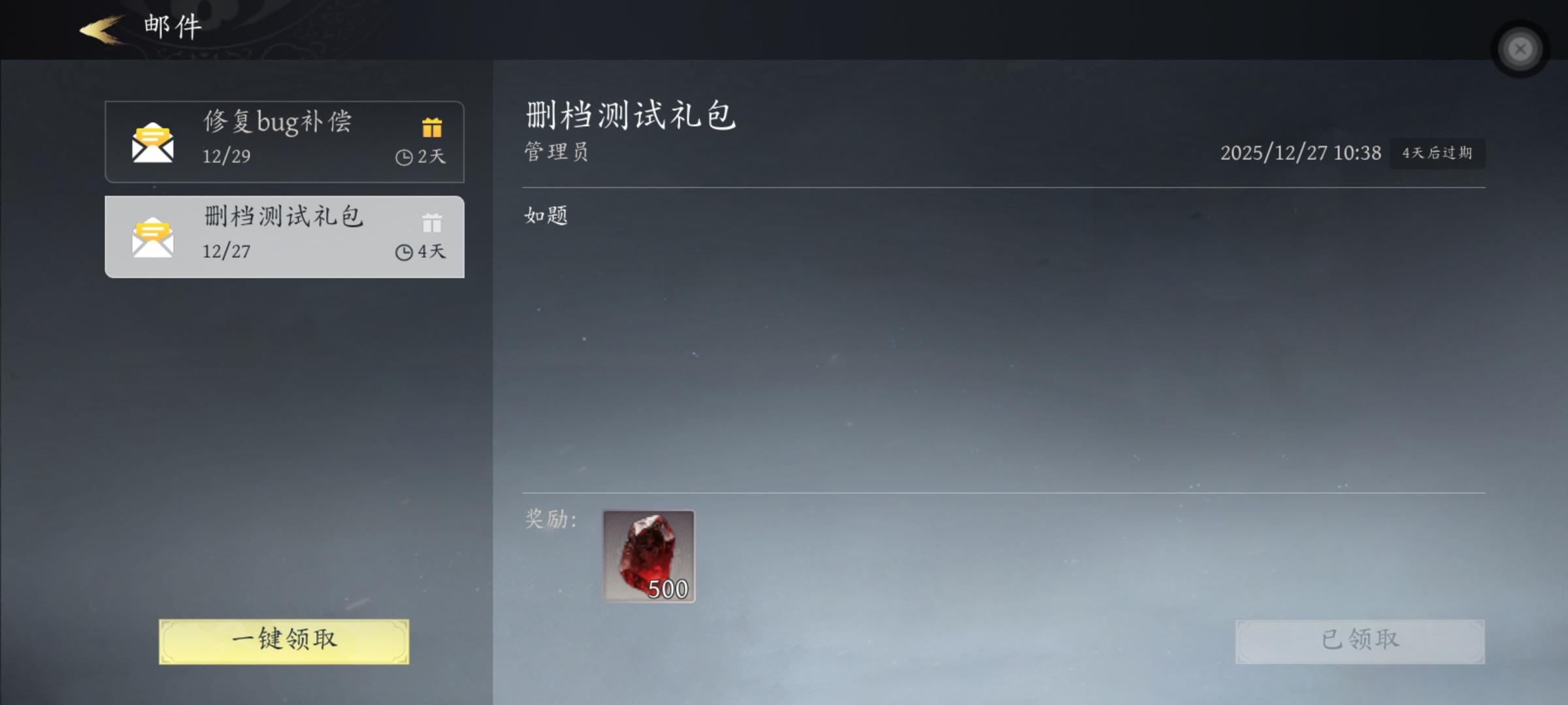 如图,今晚更新之后,等级技能钱币全部归零,但是已经领取的邮件奖励倒是没有恢复。