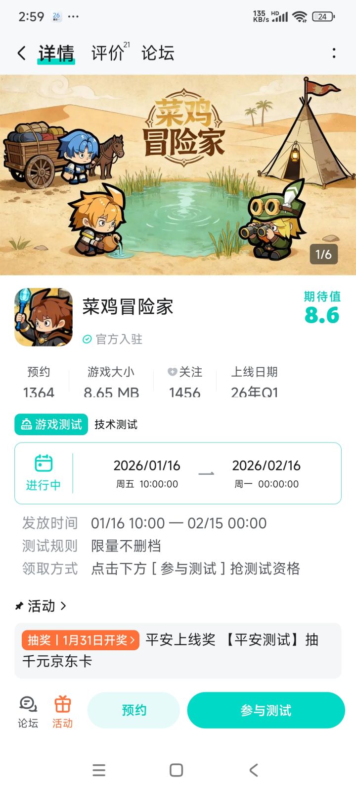 🏳🌈游戏类型:角色扮演、放置、休闲、冒险✨测试类型:限量不删档(资格有限,先到先得)🌤招募时间:2026/01/05~2026/01/08🌋测试平台:安卓🚤测试资格领取方式:点击帖子评论区上方的游戏链接【预约】,然后点击“游戏头像”进入游戏详情页,最后点击底部导航栏【报名测试】即可完成招募。💛感兴趣的小伙伴赶紧先行预约并报名参与测试吧!具体测试资格通知可留意TapTap站内通知或官方动