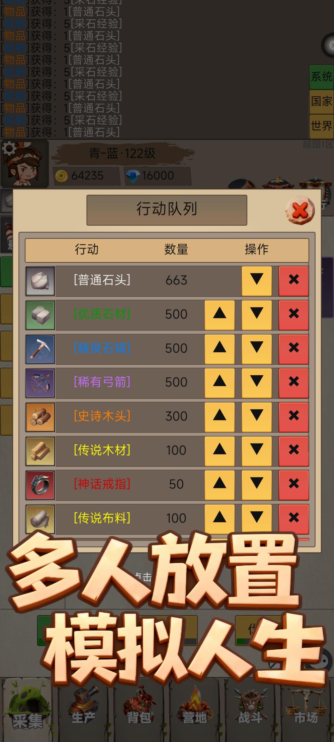 【无广告】多人放置RPG。你可以采集资源、生产物品、建造营地,也可以市场交易、组建部落,还可以防守掠夺、问鼎国战。积累财富,去冲击【最强】拓荒者!