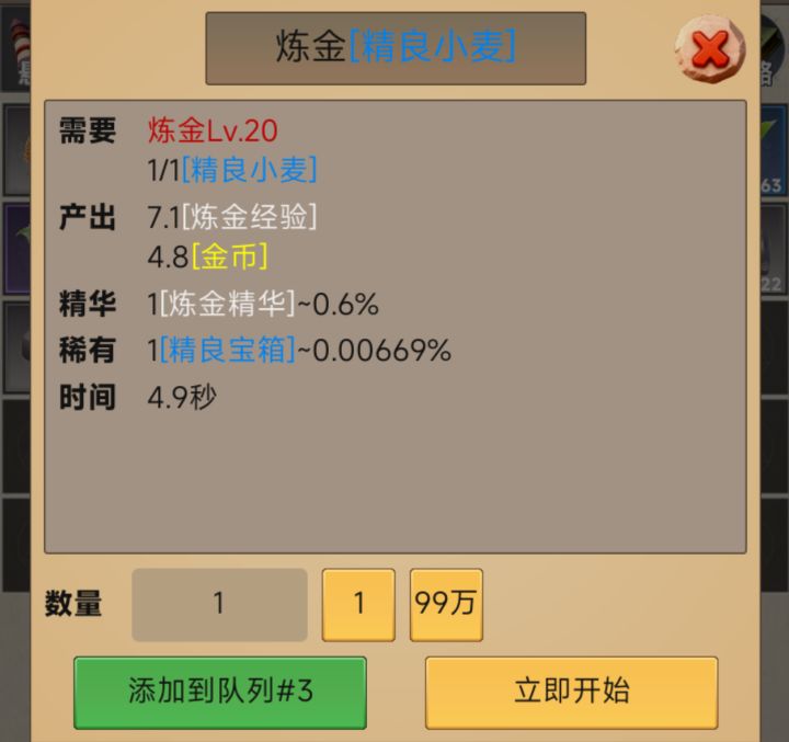 算了半天,也就最初级的物资比如普通小麦,市场卖价比较低的时候,买来炼金是正收益,但是每秒收益也是差的离谱。而且越高级的物品,时长增加,但是收益增长太小,越高级越亏。所以炼金是有啥隐藏功能吗?如果不增加收益我不知道练炼金的意义何在?