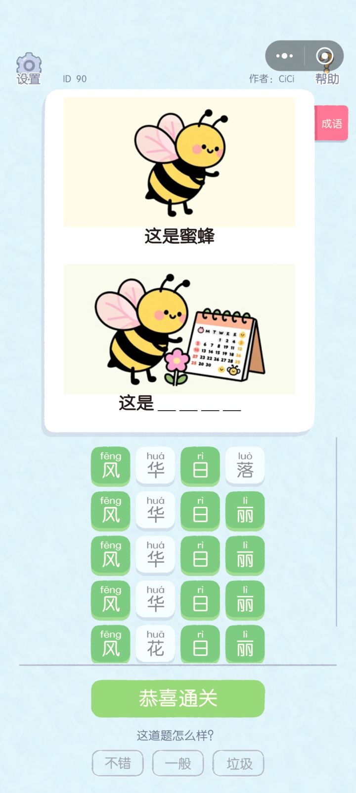 每天都做测试的题,发现现在成语是越来越多,虽然是在测试,但有的是有点牵强了,还有的成语比较生僻吧,或者只是我觉得生僻😂希望越来越好吧