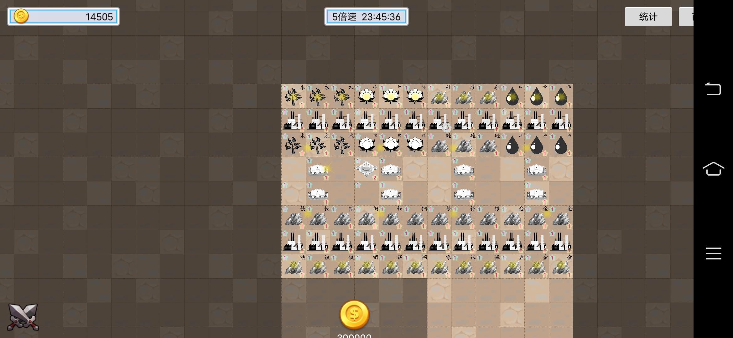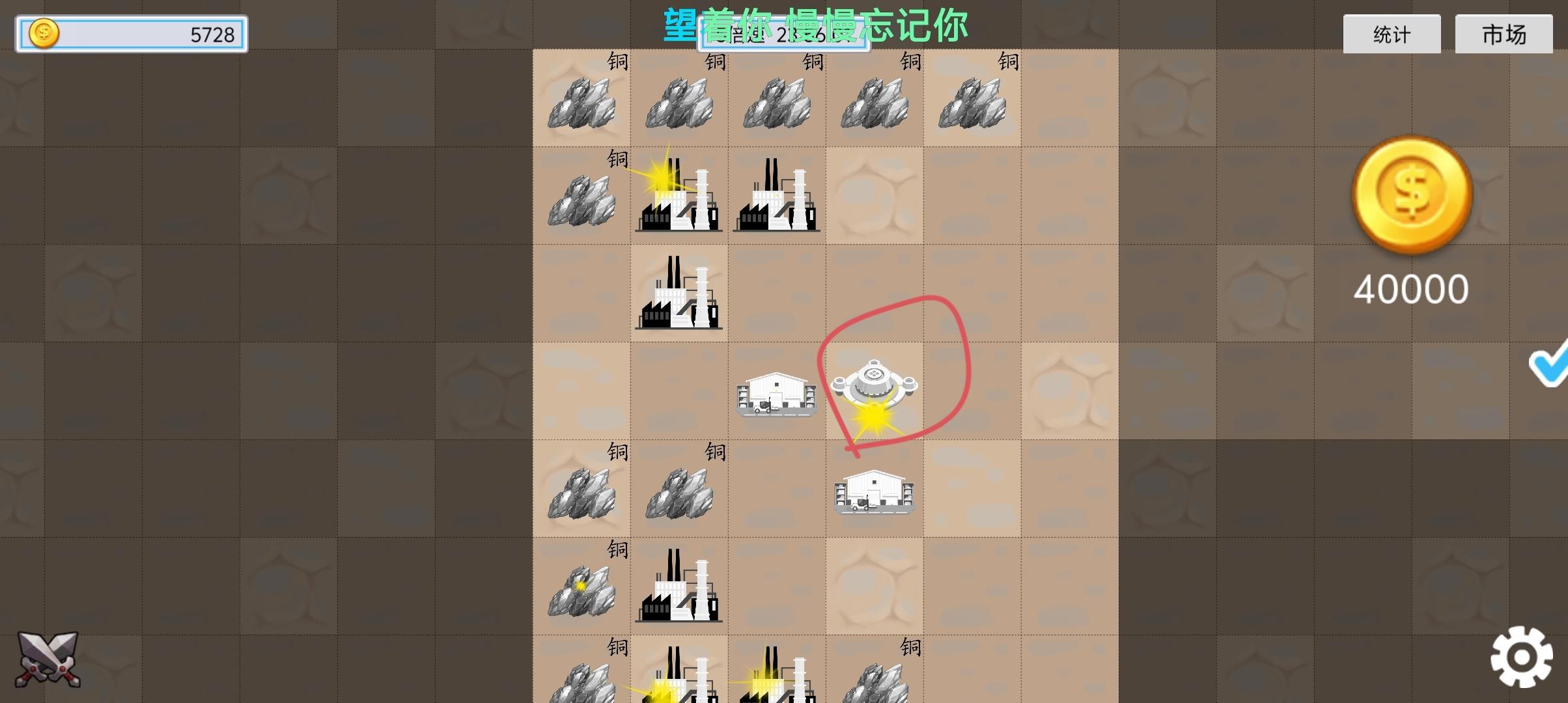 塔防:右下角两把交叉剑图标。空白绿区域可以建设新的建筑,消耗材料。守住波次可以得到资源。顶上数字是关卡,通关后重进可以进下一关选关。好了你已经会塔防了,然后就是塔防拿资源,挂机。
