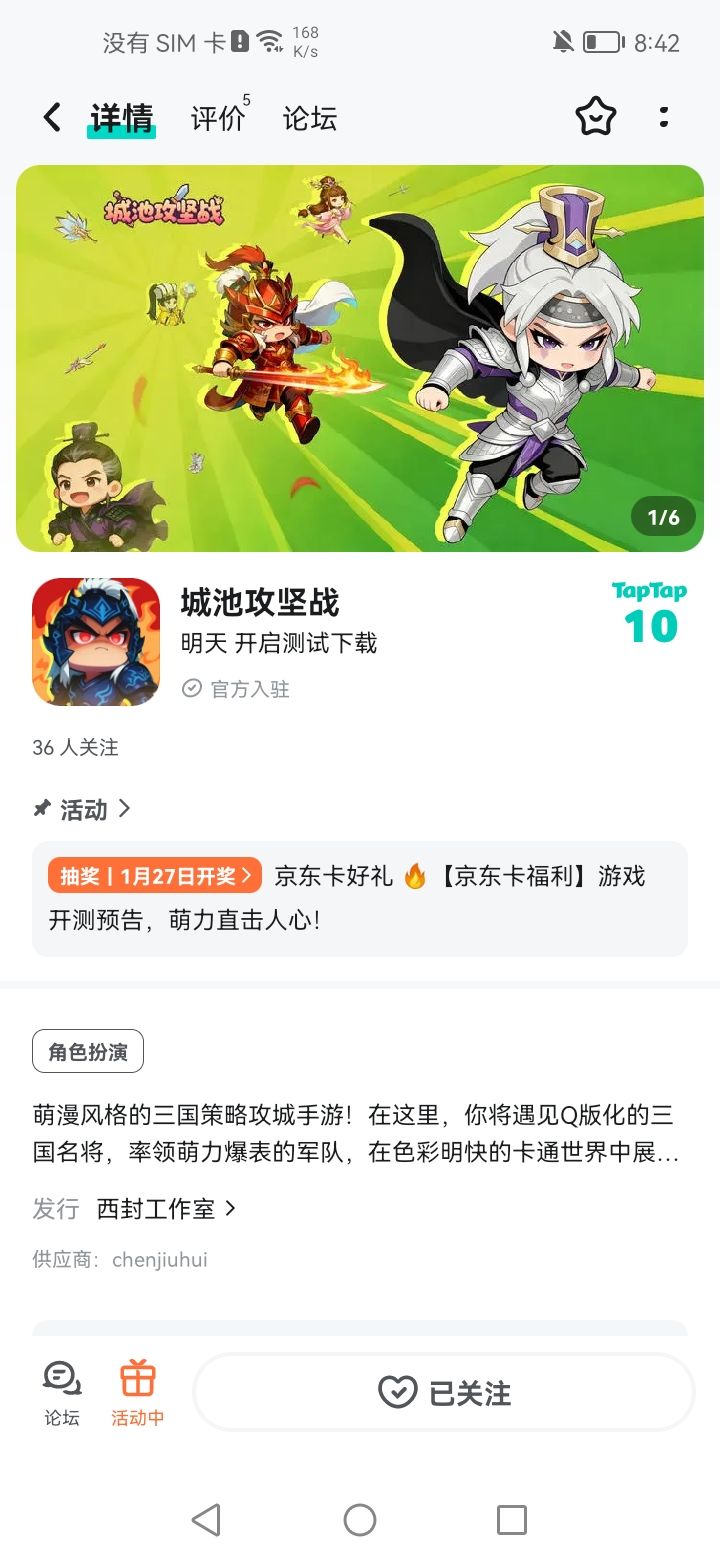 告别沉重历史,这款三国策略手游藏满惊喜!Q 版三国名将萌化你的心,率领萌系军队展开妙趣攻防战,轻松又解压。游戏即将开启测试,现在参与抽奖,20 京东卡直接带回家!🎁 开测专属福利:【京东卡抽奖活动】▶ 参与方式1.点击关注发帖账号和《城池攻坚战》且发新帖晒截图2.在本帖下方评论区分享发帖链接即可【奖品发放】到达开奖时间后,由taptap系统随机抽取符合要求的幸运玩家,自动发放兑换码(