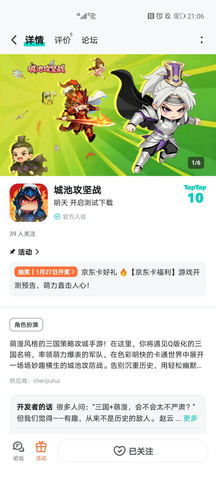 告别沉重历史,这款三国策略手游藏满惊喜!Q 版三国名将萌化你的心,率领萌系军队展开妙趣攻防战,轻松又解压。游戏即将开启测试,现在参与抽奖,20 京东卡直接带回家!🎁 开测专属福利:【京东卡抽奖活动】▶ 参与方式1.点击关注发帖账号和《城池攻坚战》且发新帖晒截图2.在本帖下方评论区分享发帖链接即可【奖品发放】到达开奖时间后,由taptap系统随机抽取符合要求的幸运玩家,自动发放兑换码(