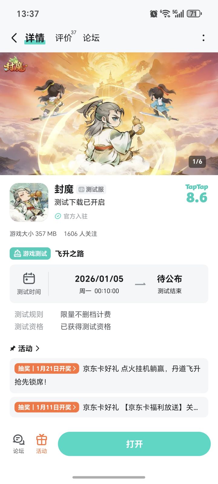 点火挂机当丹尊,躺着飞升不费力!这款能让你彻底解放双手的修仙手游,绝对是摸鱼党、懒人党的本命修仙之作!即刻关注锁席,坐等开测飞升!邀仙友共盼丹道大宗开启,将抽5人送20元京东卡!▶ 参与方式1.点击关注发帖账号并关注《封魔》且发新帖晒截图2.在本帖下方评论区分享发帖链接即可【奖品发放】到达开奖时间后,由taptap系统随机抽取符合要求的幸运玩家,自动发放兑换码(对于同一账号大量故意发布