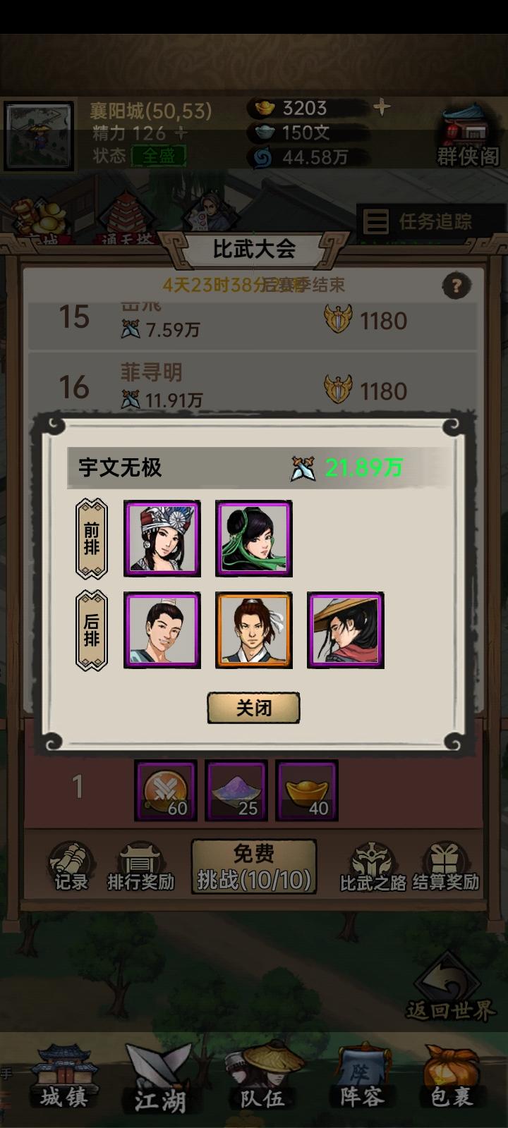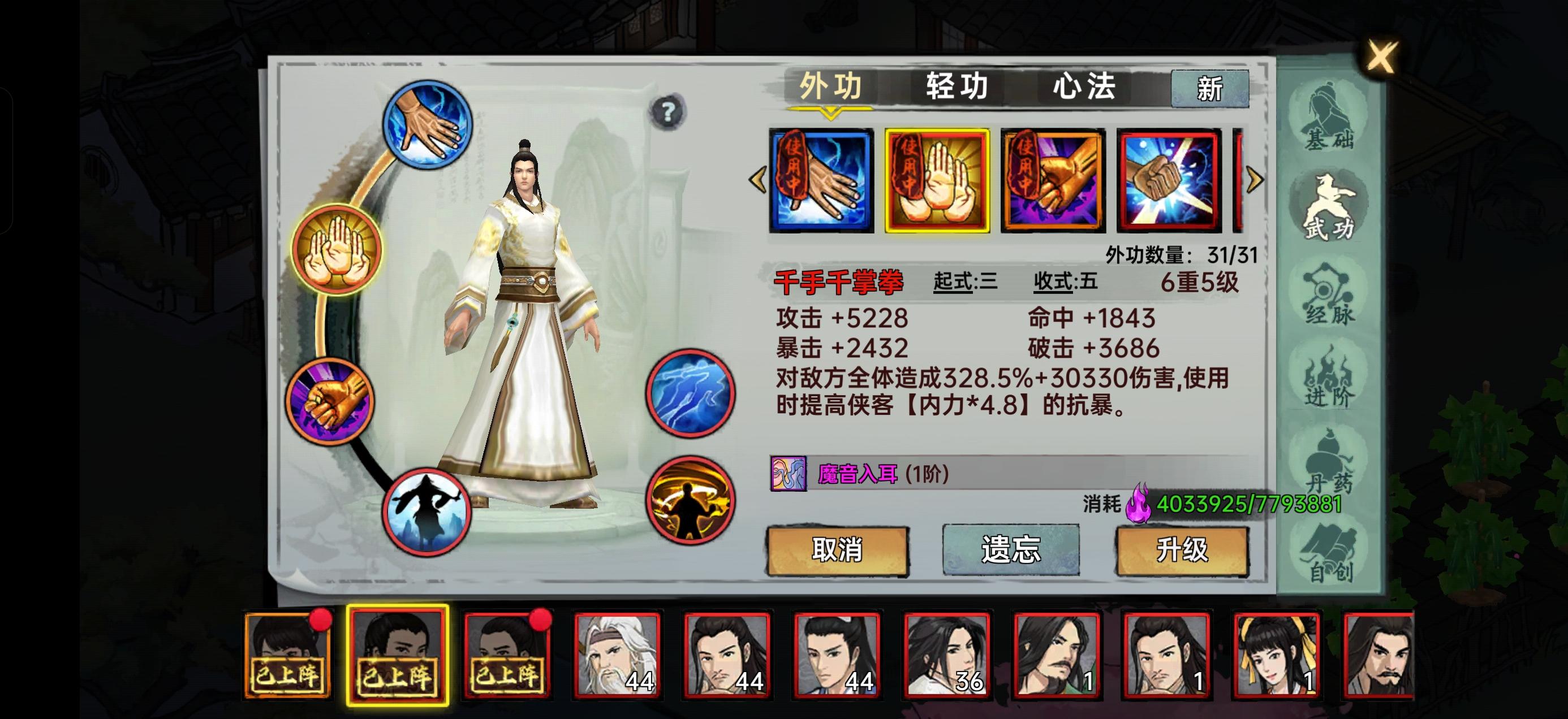 这游戏前面开荒对0氪不友好,具体说下,替兄弟们试错首先 核心是刷塔,就要求群攻。然后送的随从没啥用,难得是第一个群攻,所以氪6快是很有必要的,因为橙色侠客也要300元宝才能招募,要存很久。说下不氪的选择 剧情送的 第一个随从是拳 第二个是刀 所以前期就排除了这俩选择 拳 内力,刀 根骨,棍 臂力,剑 身法 。然后送礼最好的侠客有一个剑 一个刀。排除剑和刀,然后拳,就只剩棍,如果首充,就可以选拳