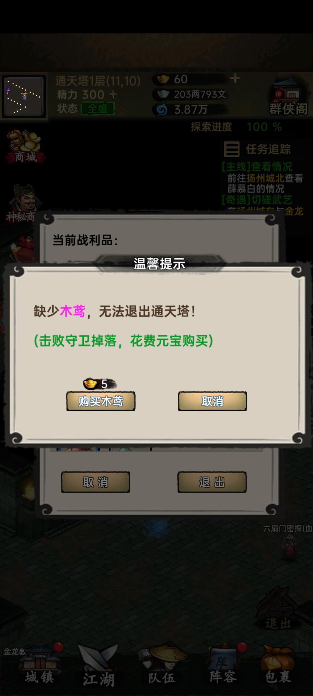 入坑第九天,每天都是精力刷完,目前版本刷塔效率低,比较耗时,刷的重复次数多了也容易疲劳,现在前期还好,中期开始会很难维持,不够休闲。。(改进建议直接看评论,这里就不多说了)所以对于我们这些手动刷通天塔辛苦存下来的银俩后续版本建议出个元宝兑换功能,可以按10:1来兑换,也算是一点辛苦费吧