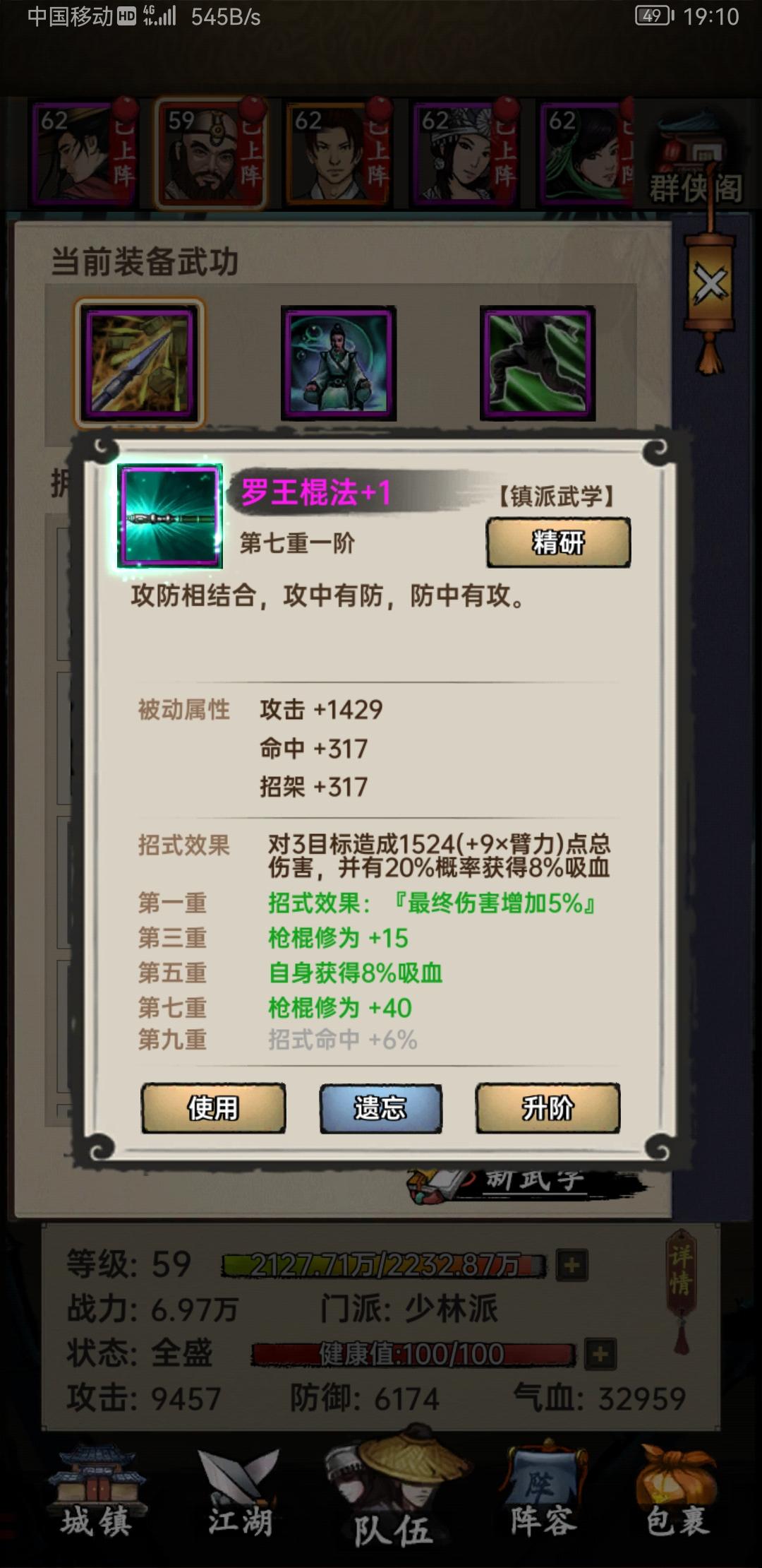 才玩两天就发现游戏技能数值不对,学了两本镇派棍法到七重,结果棍系才90。(40+15)×2=90???真的无语了,拿着三十六棍都学不了,还得浪费再学一本低级棍法。就这品质还好意思叫人充钱?!