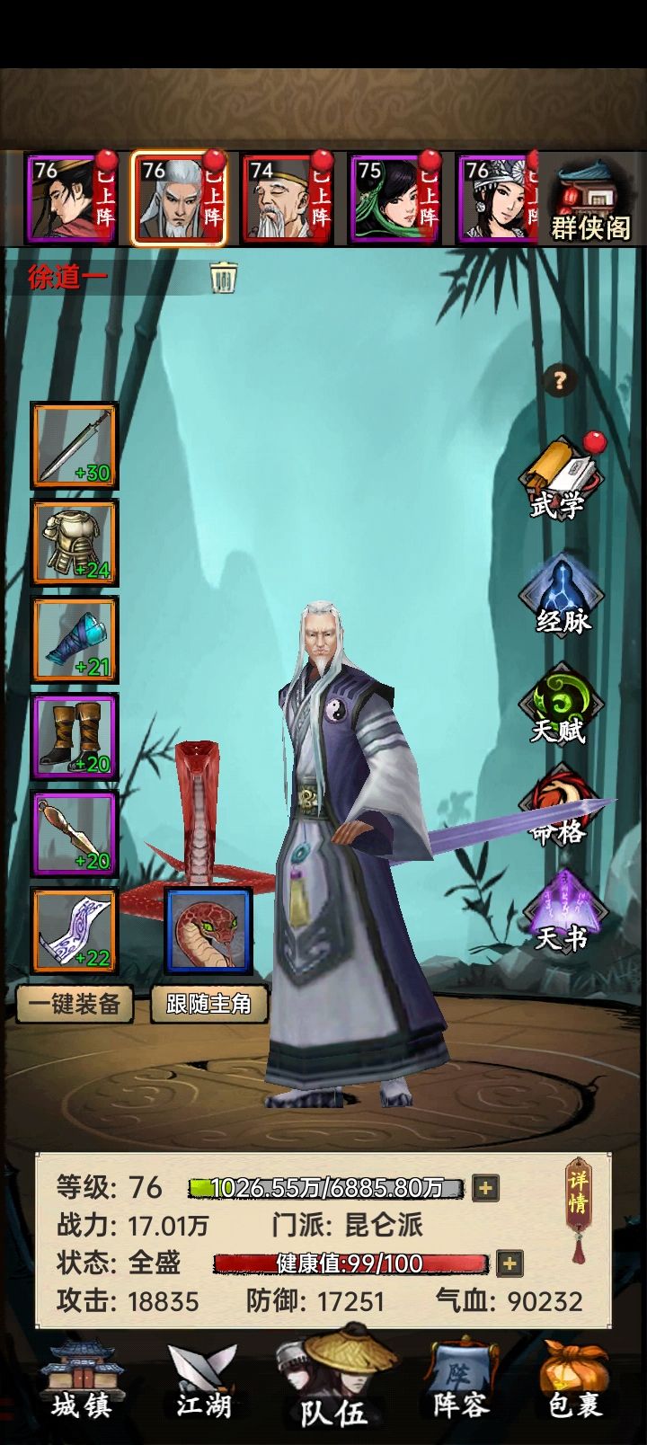 写在前面:这游戏本质是一款爬塔刷刷刷的游戏,没有扫荡,肝且无聊,零氪低氪前期会玩的很累,入坑请慎重。一.主角职业选择1.主角是废物,是挂件,资质1.0,全属性从前到后落后1.25的红侠客,除了零氪,其他不建议重点培养。2.零氪微氪推荐棍/剑开局,三卡玩家红侠客开局,主角看自己喜好随便选(反正只是挂件)3.各职业技能预览,招式打5个才能快速刷塔,棍/剑紫色就有本职业群5,刀最垃圾零氪别选。棍